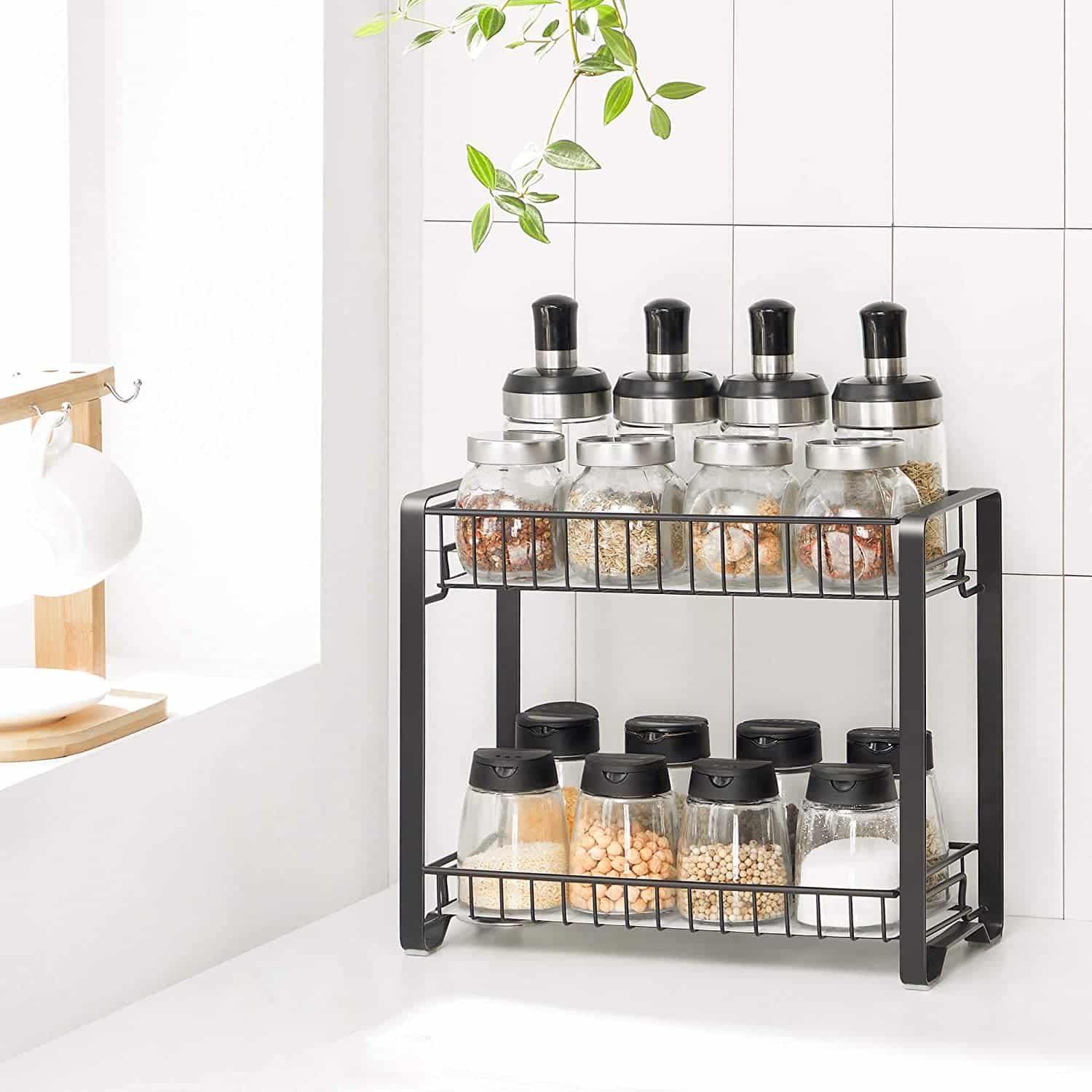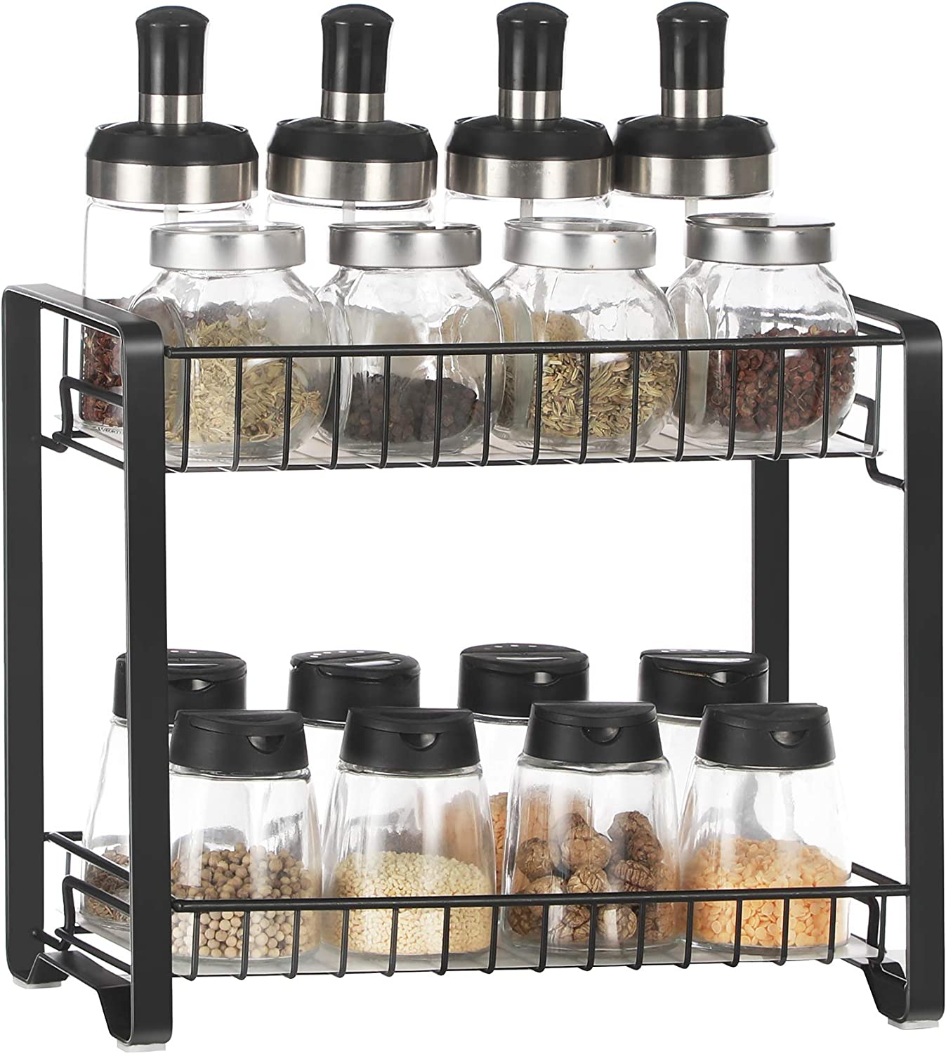 Krijg jou, chefkok: Heb je het bij het koken altijd haast om de juiste specerijen in chaos te vinden? Dit kruidenrek met 2 verdiepingen helpt jou. Een netjes werkblad is een van de voorwaarden voor een heerlijk gerecht en een goede kok