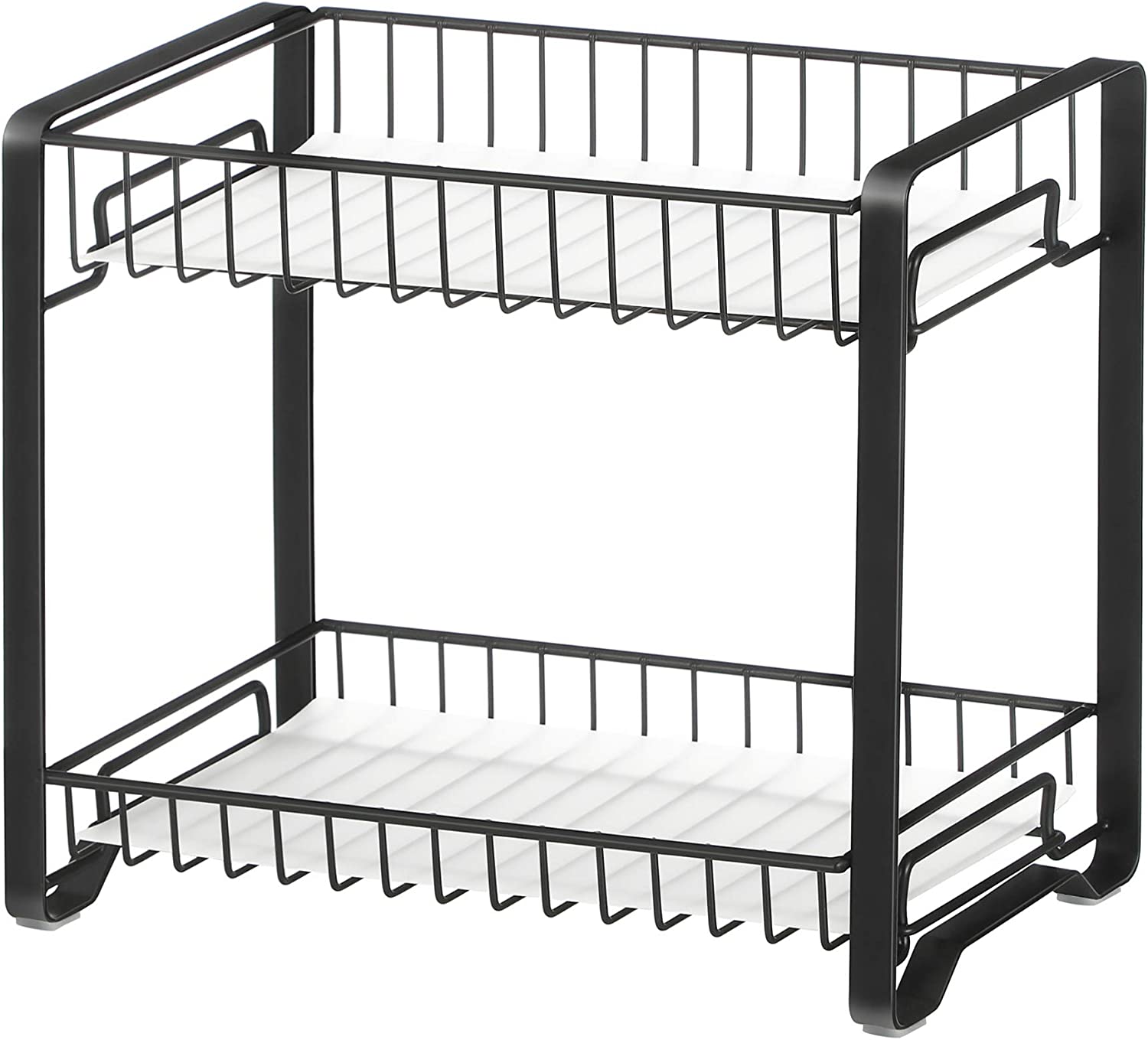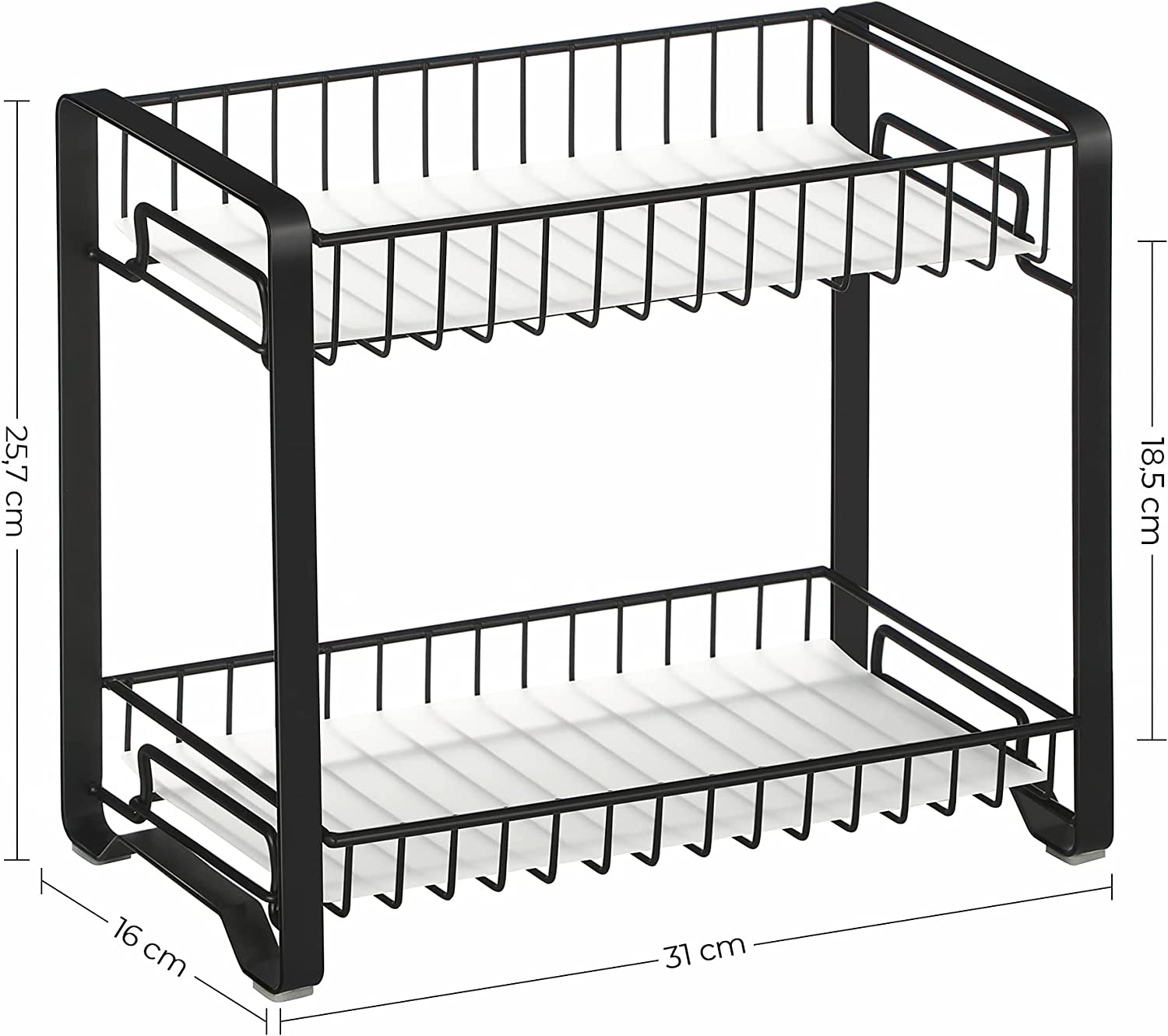 Kruidenrek Met 2 Niveaus, Keukenrek Van Metaal, Met Kunststof Platen, Antislipvoeten, Gemakkelijk Te Monteren, Voor Werkblad, Eetkamer, Badkamer, Keuken, Zwart