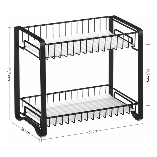 Met een afmeting van 31 x 16 x 25,7 cm neemt het weinig ruimte in de keuken in, biedt met zijn 2 planken echter veel ruimte voor specerijen en dergelijke. De verhoogde randen beschermen je voorwerpen tegen vallen. Voor de eenvoudige montage zijn geen gereedschap nodig. 2 gemakkelijk te reinigen platen van kunststof zorgen voor een vlak oppervlak en beschermen kleine voorwerpen tegen vallen of vastzetten. Stekken.4 anti-slip De voeten voorkomen wegglijden en beschermen je werkbladen tegen krassen. Ook geschikt voor de keukenkast, de eetkamer, de badkamer of de eetkamer.