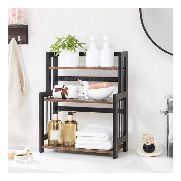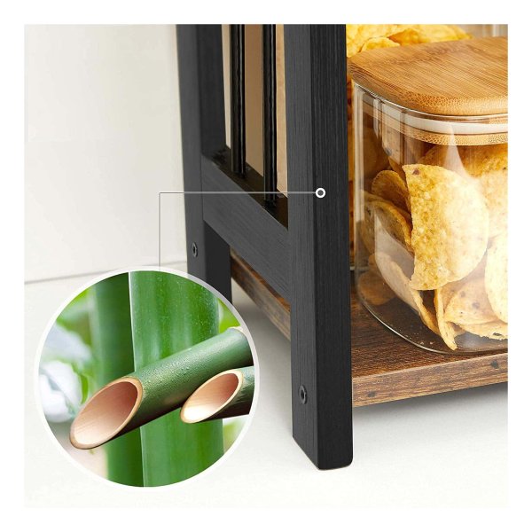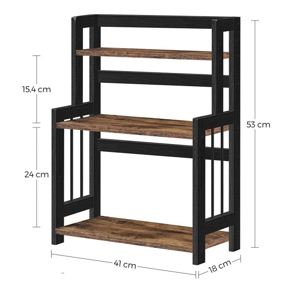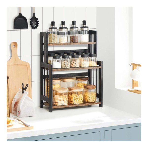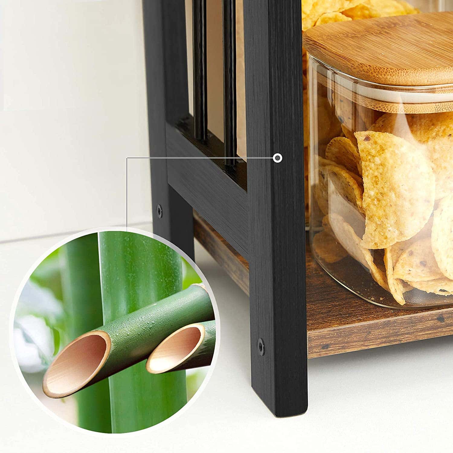 Kruidenrek Met 3 Niveaus, Keukenplank, Opbergrek, Voor Aanrecht, Bamboerek, Voor Keuken, Eetkamer, Kantoor, Vintage Bruin-Zwart