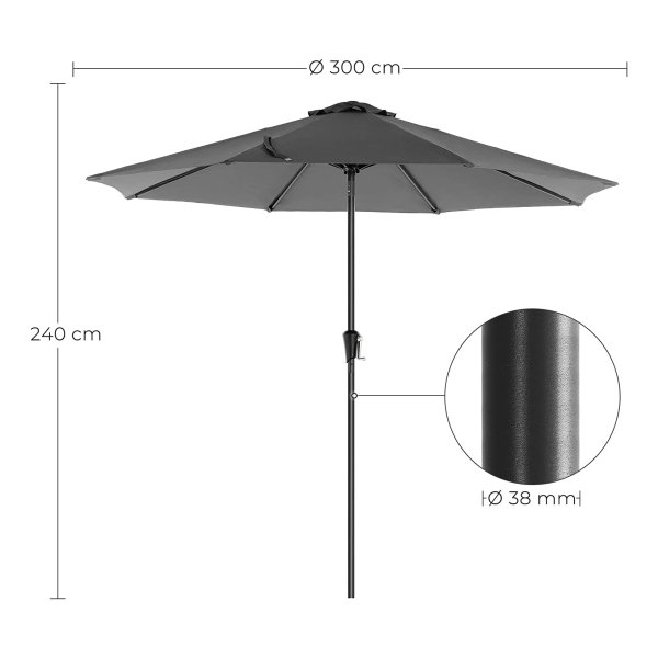 Parasol, Ø 300 Cm, Tuinparasol, Marktparasol, Uv-Bescherming Tot Upf 50+, Terrasparasol, Zonwering, Scharnierend, Met Slinger, Zonder Standaard, Tuin, Balkon, Terras, Grijs