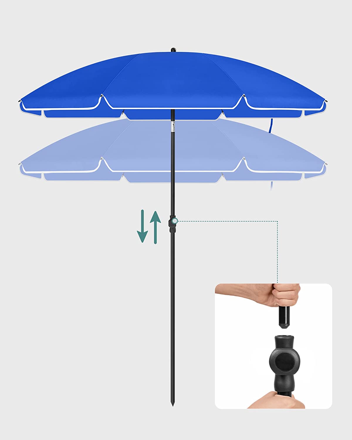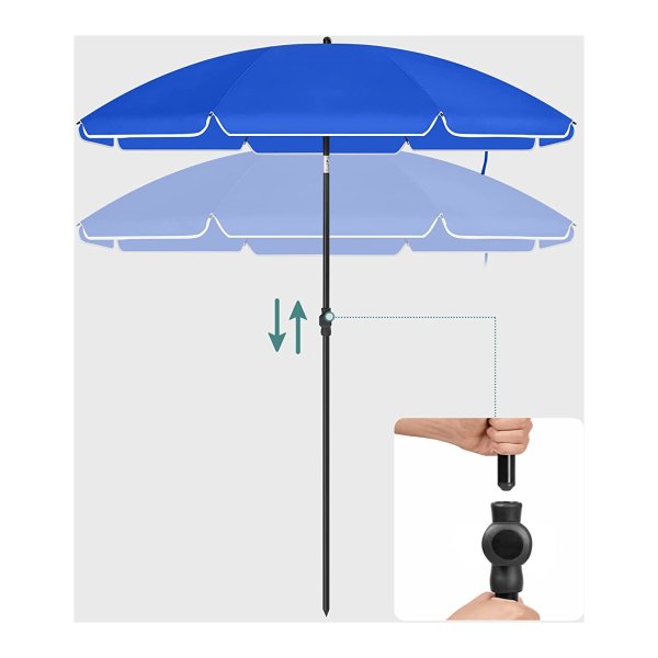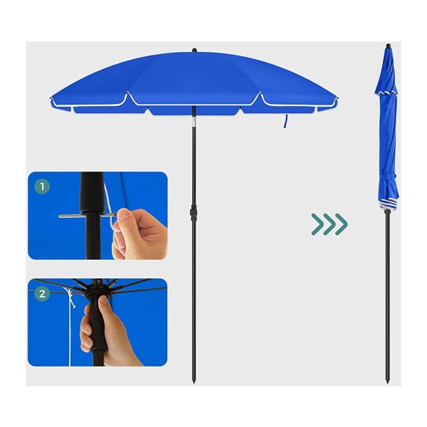 - Het maakt niet uit hoe laat… Vind je favoriete hoek! Vouw deze paraplu gemakkelijk op met het inklapmechanisme van zinklegering terwijl de zon voortgaat. Zo kun je altijd van ‘s ochtends tot ‘s avonds in de schaduw ontspannen