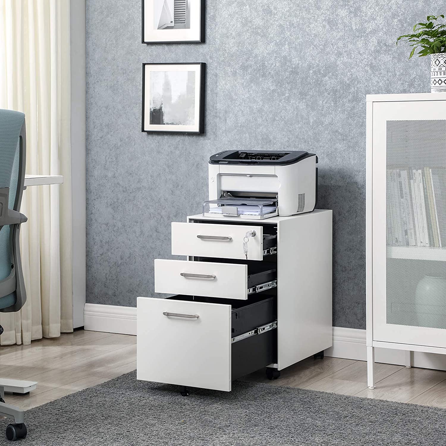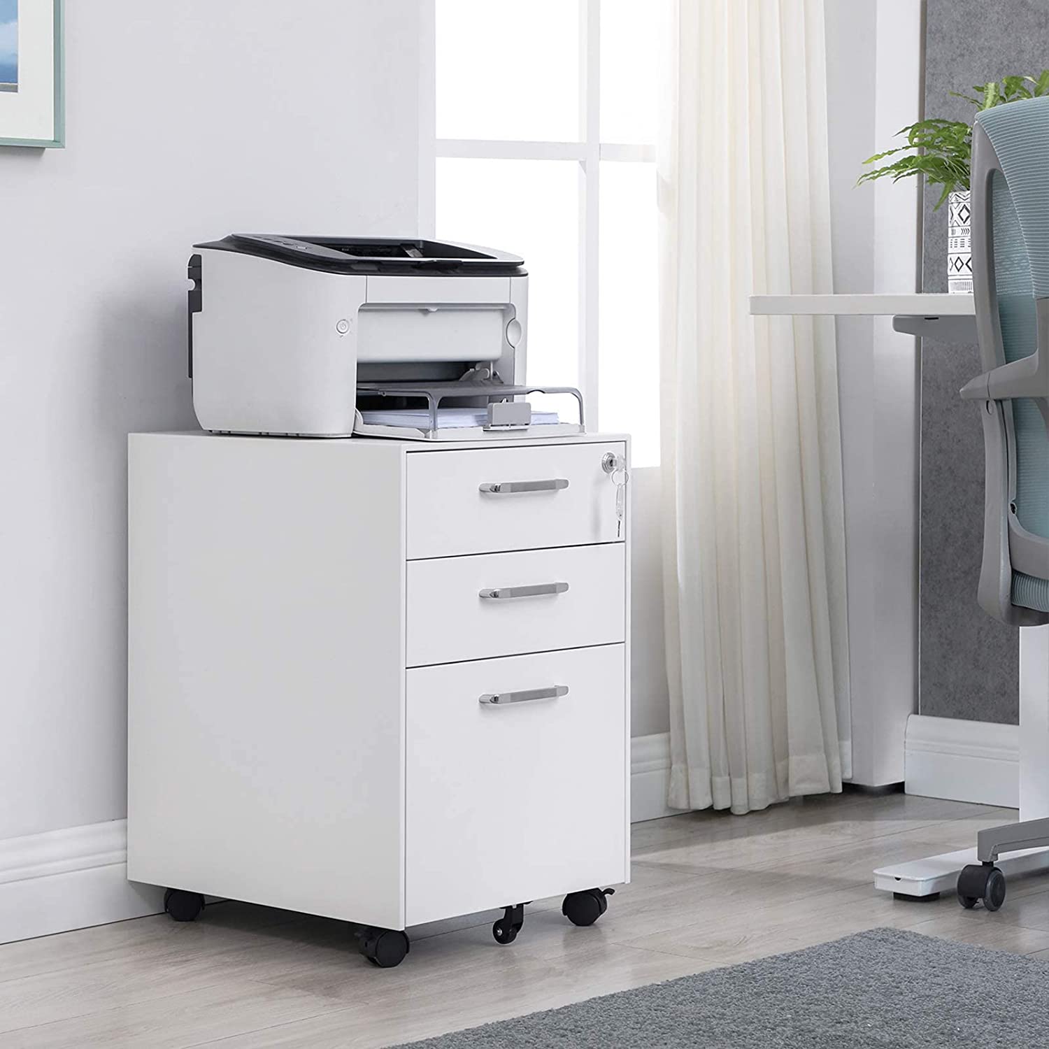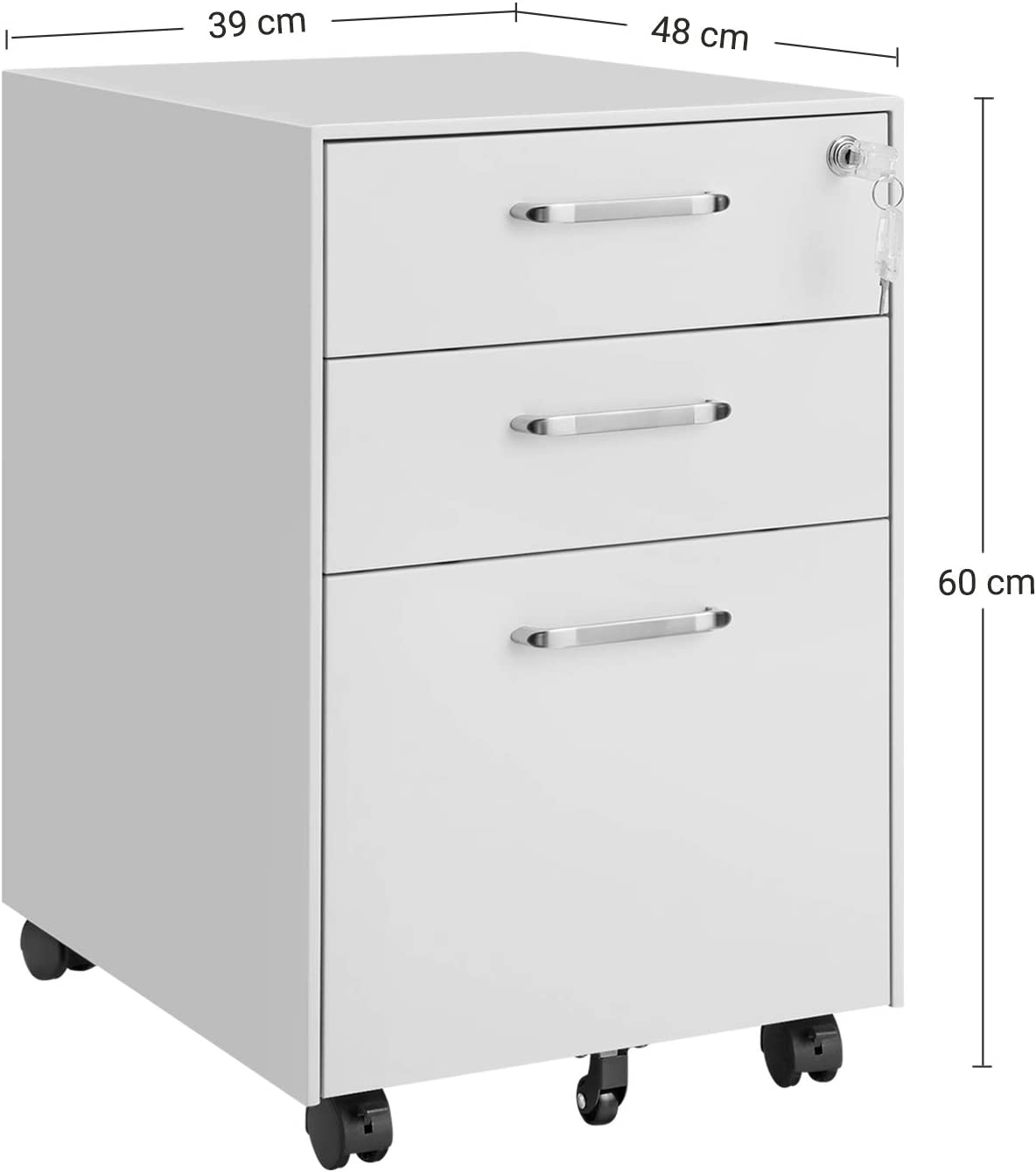 Wat je krijgt: een archiefkast met 3 grote laden en een slot dat je geheimen beschermt. Bovendien is deze kast uitgerust met wieltjes, zodat hij gemakkelijk kan worden verplaatst en meer opbergruimte op je kantoor creëert