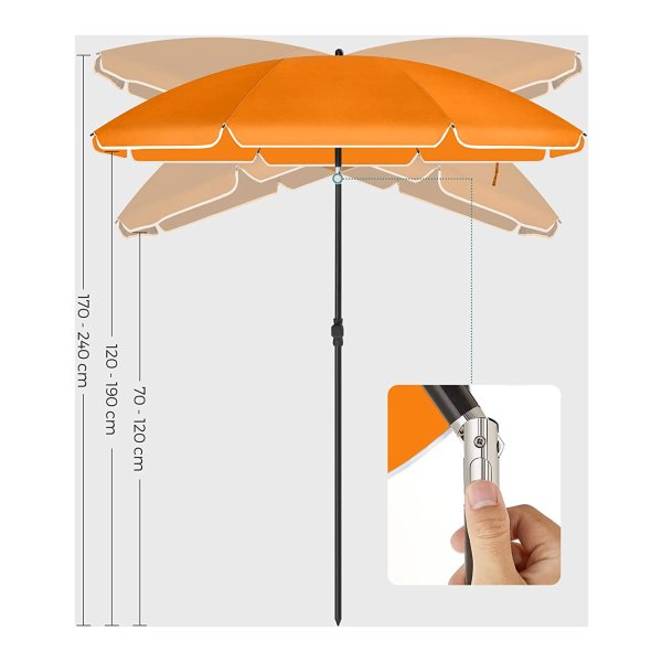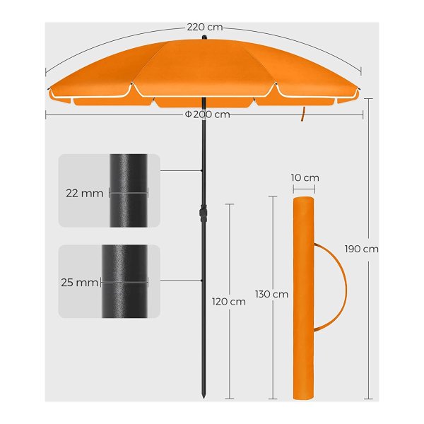 Strandparasol Diameter 200Cm Tuinparasol Upf 50+ Uv-Bescherming Opvouwbare Zonbescherming Draagbare Glasvezel Paraplu Ribben Oranje