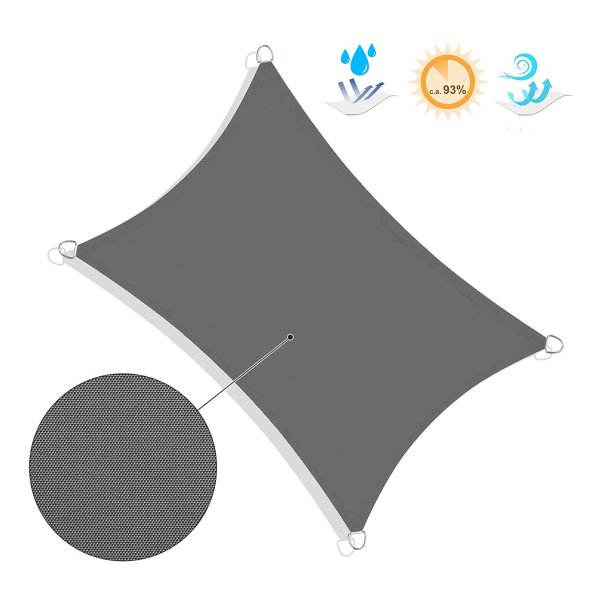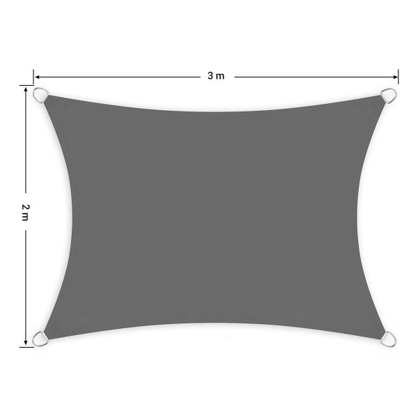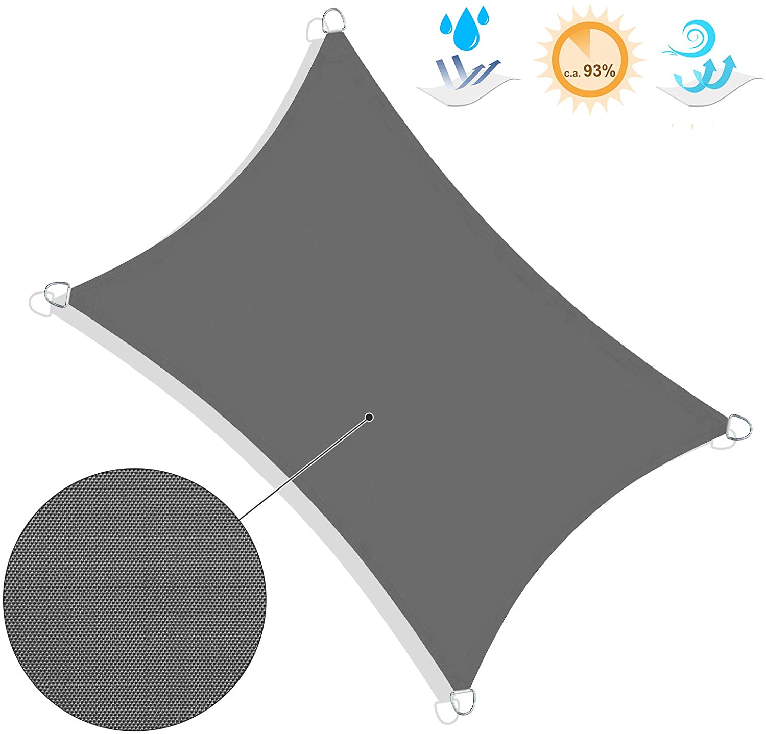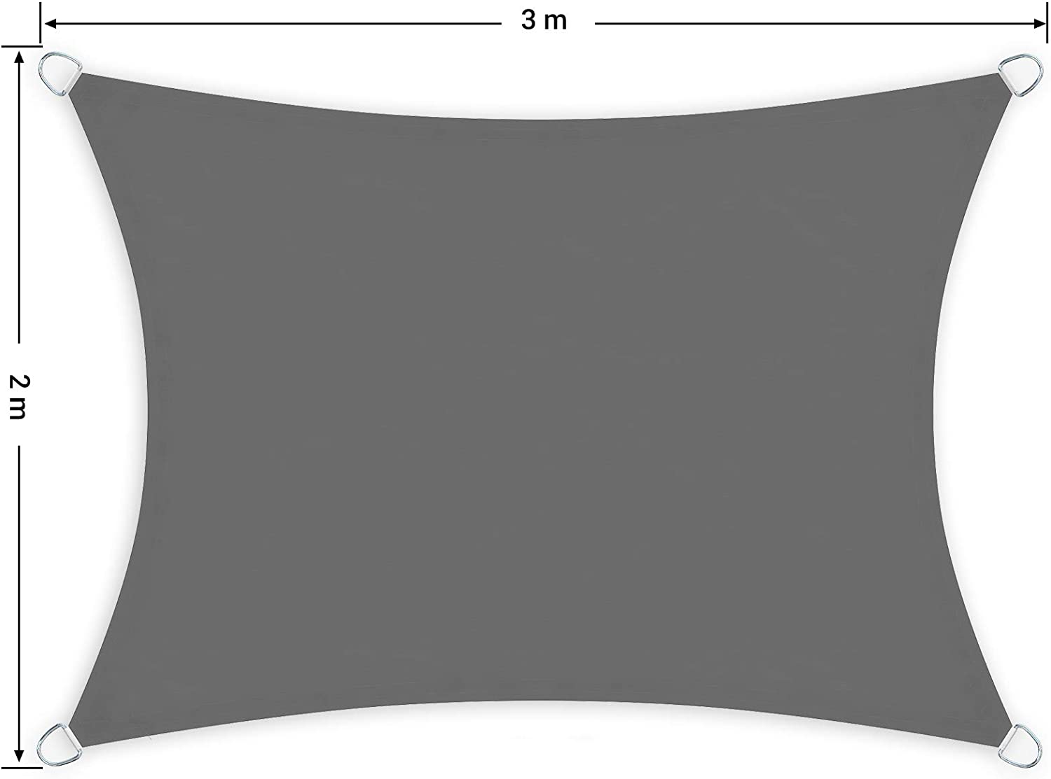 Zonnezeil 2 X 3 M, Waterdicht Tot Minstens 1000 Mm Waterkolom, 93% Uv-Bescherming, Zonwering Van Scheurvast Polyester, Weerbestendig, Tuin, Balkon, Terras, Camping, Rookgrijs
