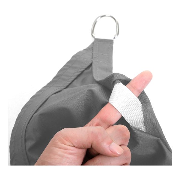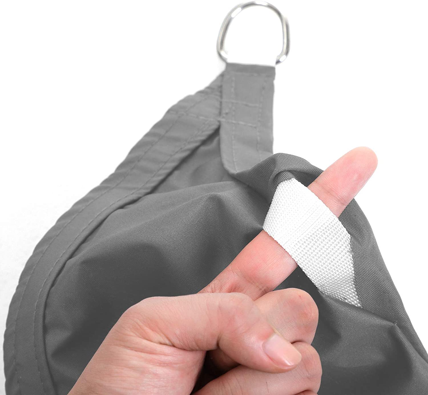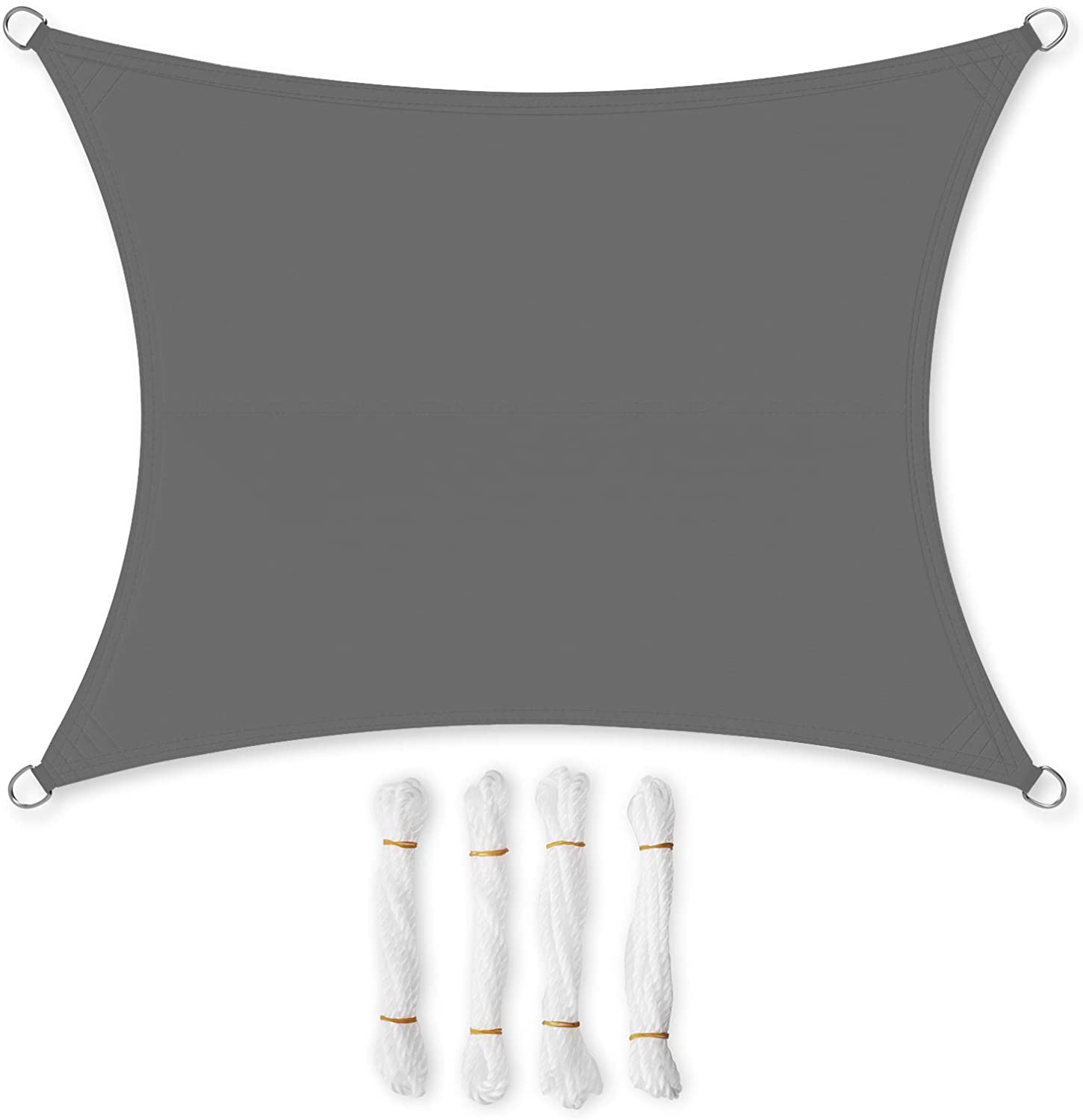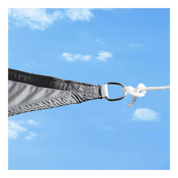 – Voorbereid op de wind: De concave vorm van het zeil en het rekbare materiaal verminderen het risico op schade aanzienlijk, zelfs bij harde wind. 4 robuuste polyester lussen, 4 roestvrijstalen ringen en 2 m lange touwen worden gebruikt voor de montage en trotseren ook winderige windstoten