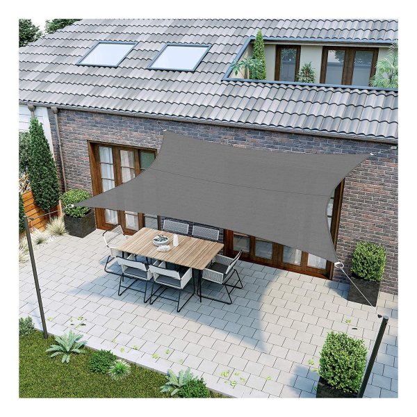 ‘- Zet de zeilen bij: Wanneer de zon in de zomer heet op uw terras schijnt en uw huid al roodachtig glanst, is het tijd voor een adequate bescherming tegen de zon! Een alternatief voor luifels is dit zonnezeil van 2 x 3 m, dat 93% van alle zonnestralen afstoot en toch kleurecht blijft (kleurechtheid bevestigd door TÜV Rheinland, testrapport nr. 0180103390a 001)