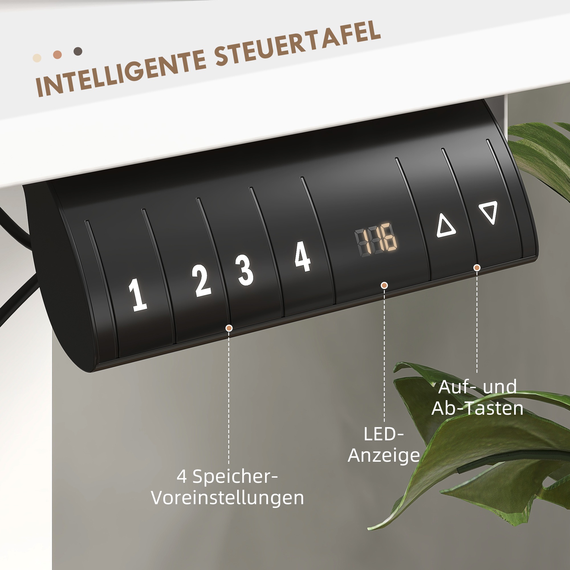 Das Vinsetto-Elektroschreibtisch ist höhenverstellbar von 72 cm bis 116 cm für sitzendes und stehendes Arbeiten. Mit Kollisionsvermeidung, Überhitzungsschutz, viel Arbeitsplatz und stabilem Stahlrahmen, bietet dieser Tisch Komfort und Sicherheit. Montage erf.