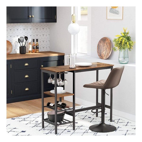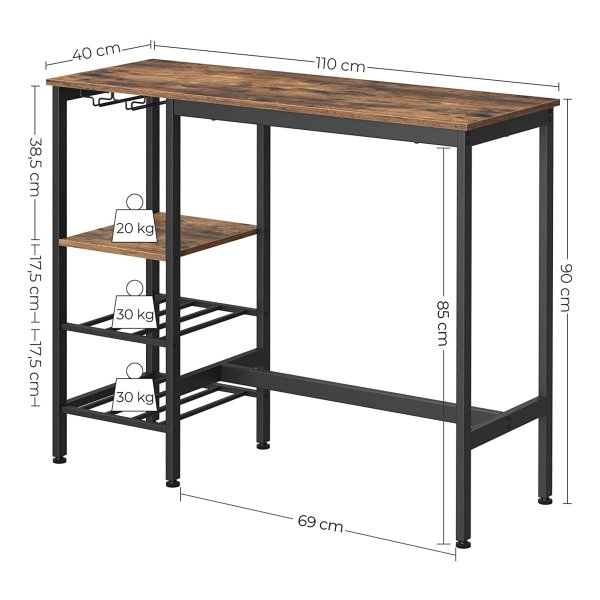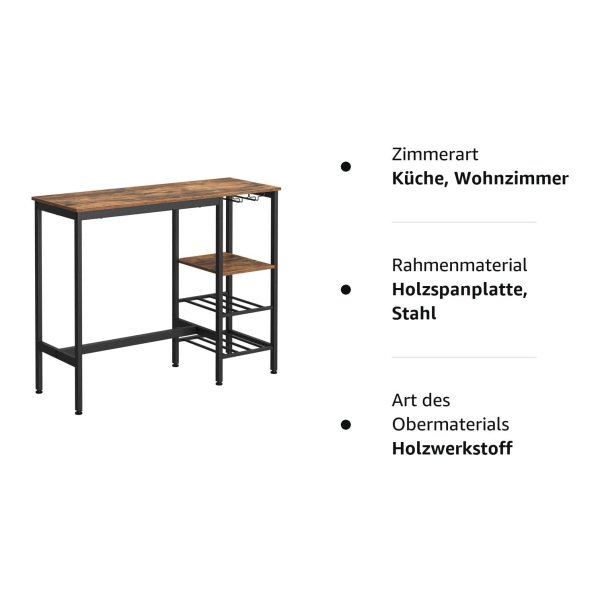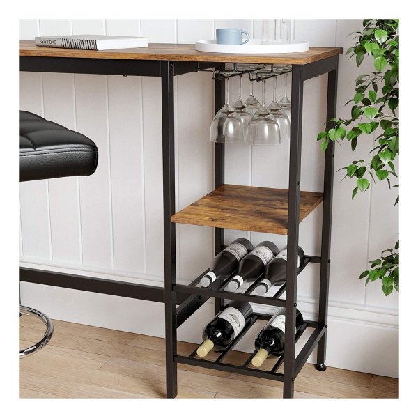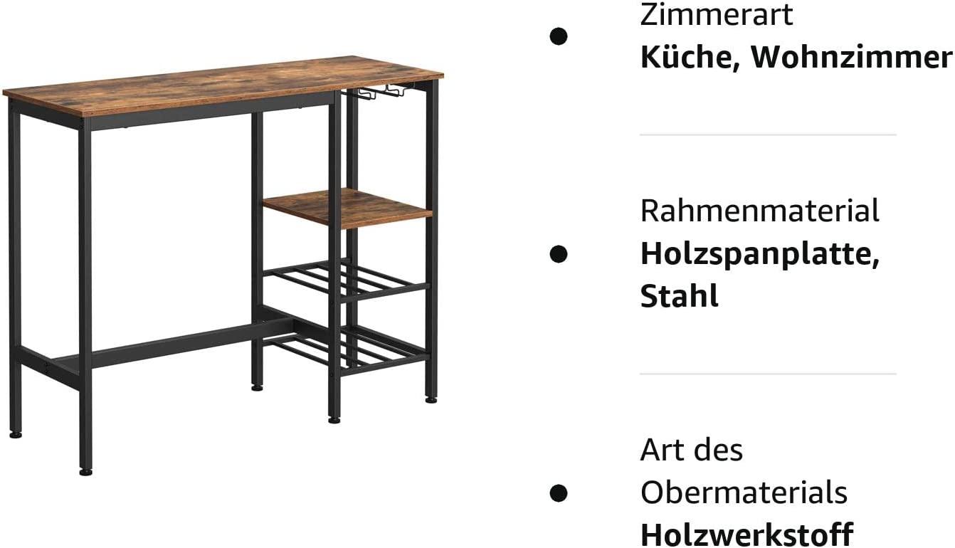 Statafel, Bartafel, Met Houders Voor Wijnglazen En Flessen, Keukentafel, Voor Woonkamer, Keuken, İndustrieel Design, Vintage Bruin-Zwart