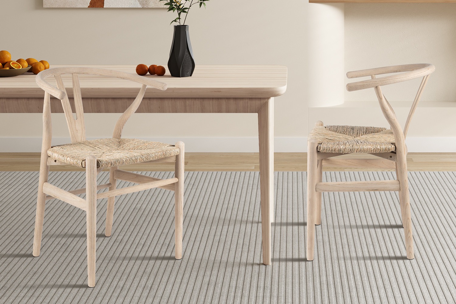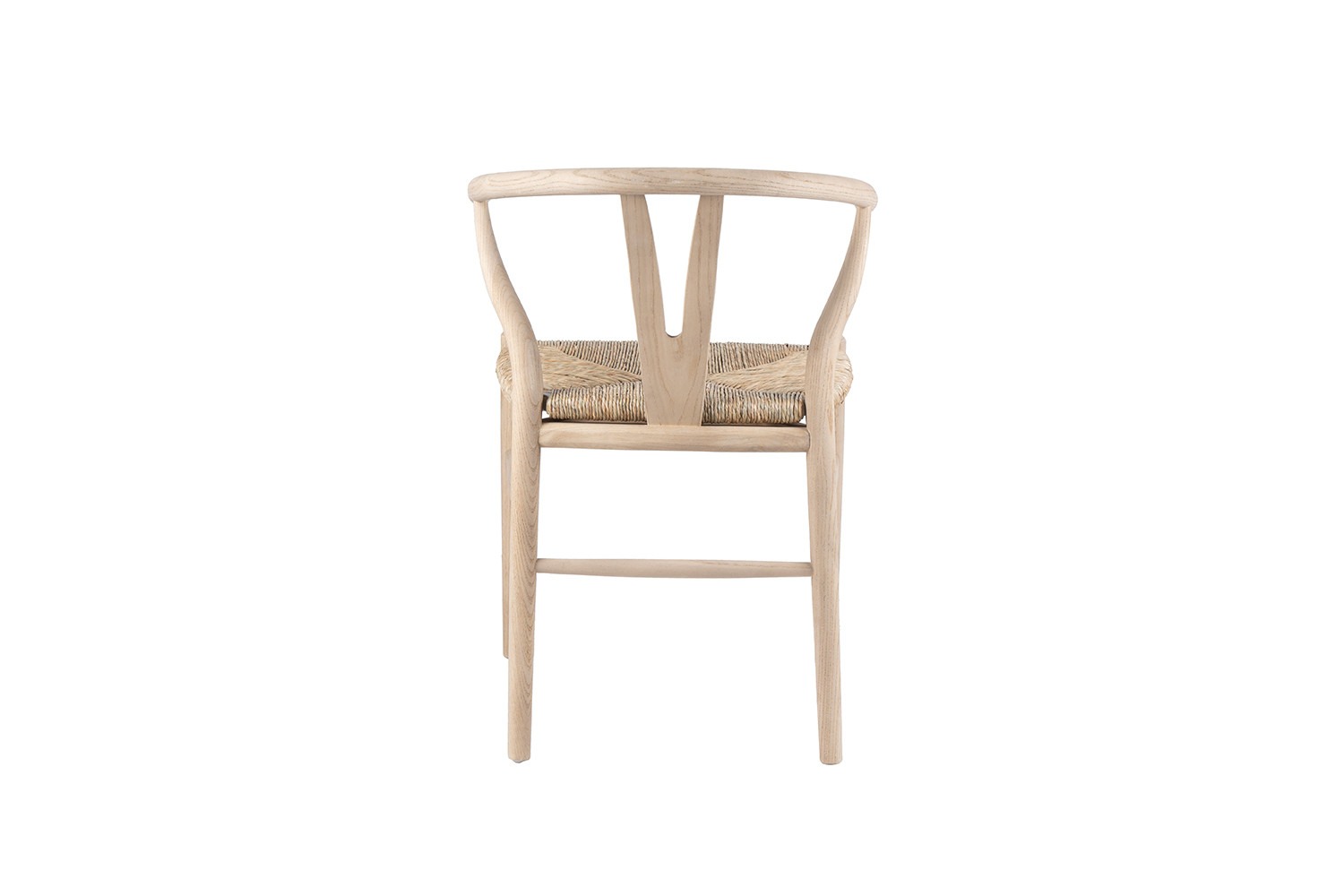 Deze prachtige houten stoel wordt geleverd met een chic gevlochten zitting in een trendy beige kleur. Met afmetingen van 77.5 x 55 x 52.5 cm past deze stoel perfect in elk interieur en voegt hij een vleugje natuurlijke elegantie toe aan elke ruimte.