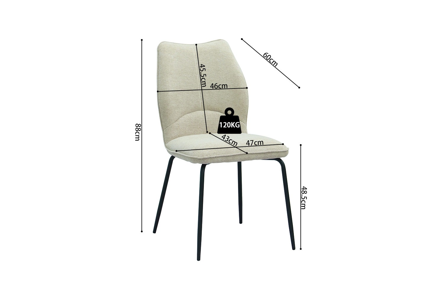 De afmetingen van de Lara stoel zijn als volgt: hoogte 88 cm, breedte 47 cm en diepte 60 cm. De stoel heeft een zithoogte van 47 cm en een zitdiepte van 42 cm, waardoor hij geschikt is voor zowel lange als korte personen. Met een gewicht van slechts 7.15 kg is deze stoel ook gemakkelijk te verplaatsen.