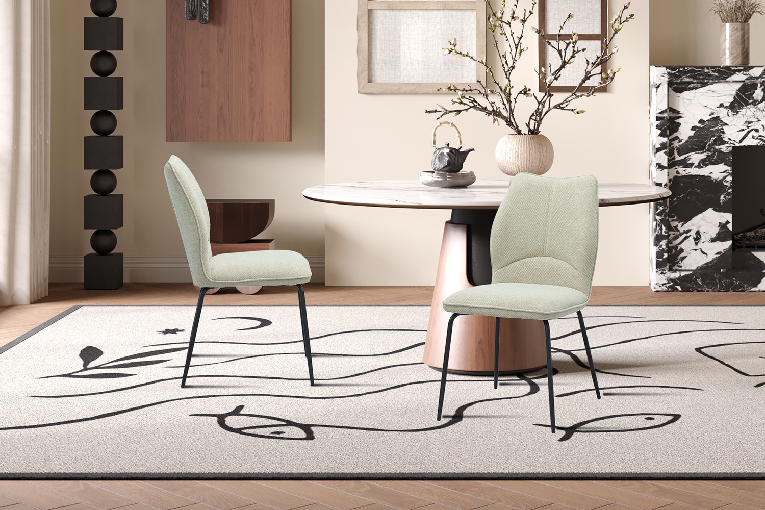 De Lara stoel is niet alleen mooi om naar te kijken, maar biedt ook een comfortabele zitervaring. De zachte stoffen bekleding voelt prettig aan en de ergonomische vormgeving zorgt voor een goede ondersteuning tijdens het zitten. Daarom is deze stoel ideaal voor lange en gezellige diners met vrienden of familie.