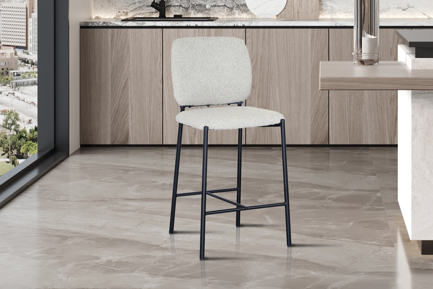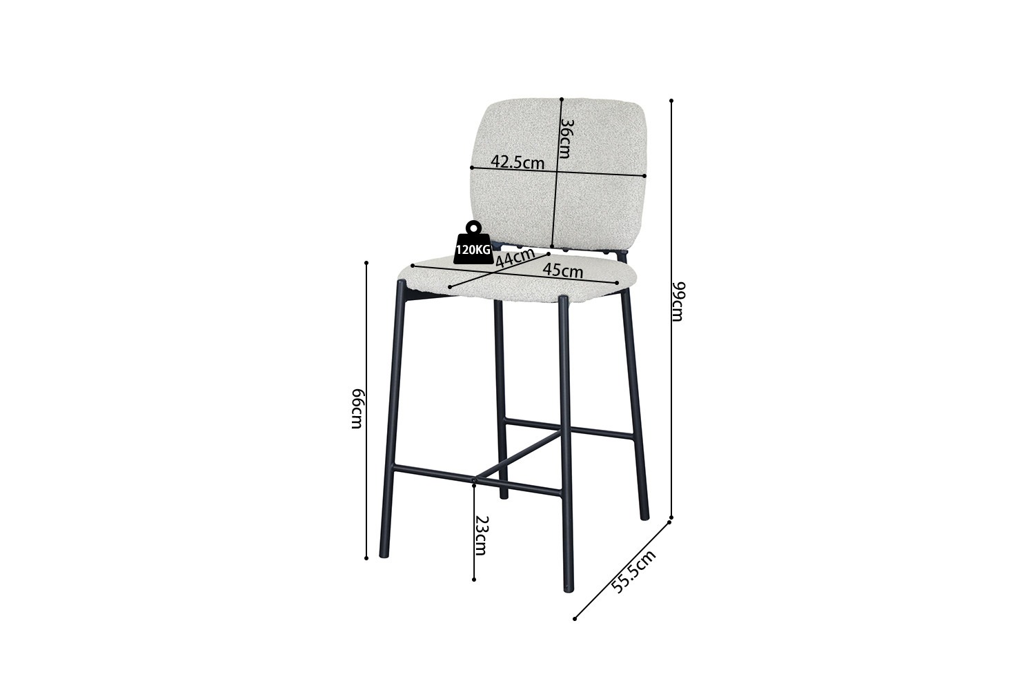 De counterstoel ‘Sophia’ heeft een stoffen bekleding in de kleur beige en een stoelrugleuning van 99 cm hoog. De afmetingen zijn 45 cm breed en 55. 5 cm diep.