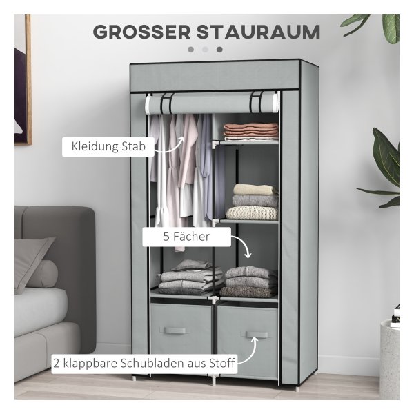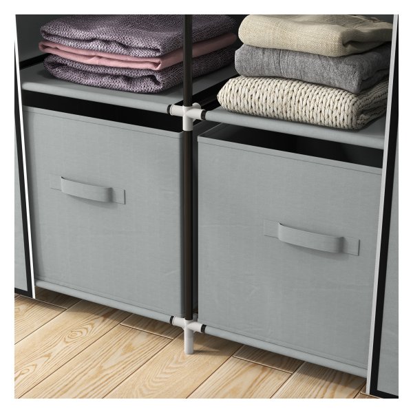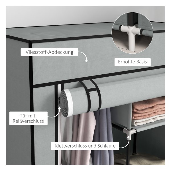 Kortom, deze opvouwbare kledingkast in lichtgrijs biedt niet alleen voldoende opbergruimte voor al je kleding, maar ook een praktische en ruimtebesparende oplossing voor het organiseren van je garderobe. Waar wacht je nog op? Upgrade jouw ruimte met deze handige kledingkast!