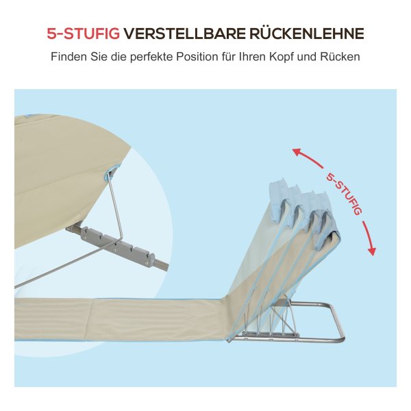 - ✔ Verstelbare rugleuning in meerdere posities voor optimaal comfort tijdens het zonnen of ontspannen met een boek