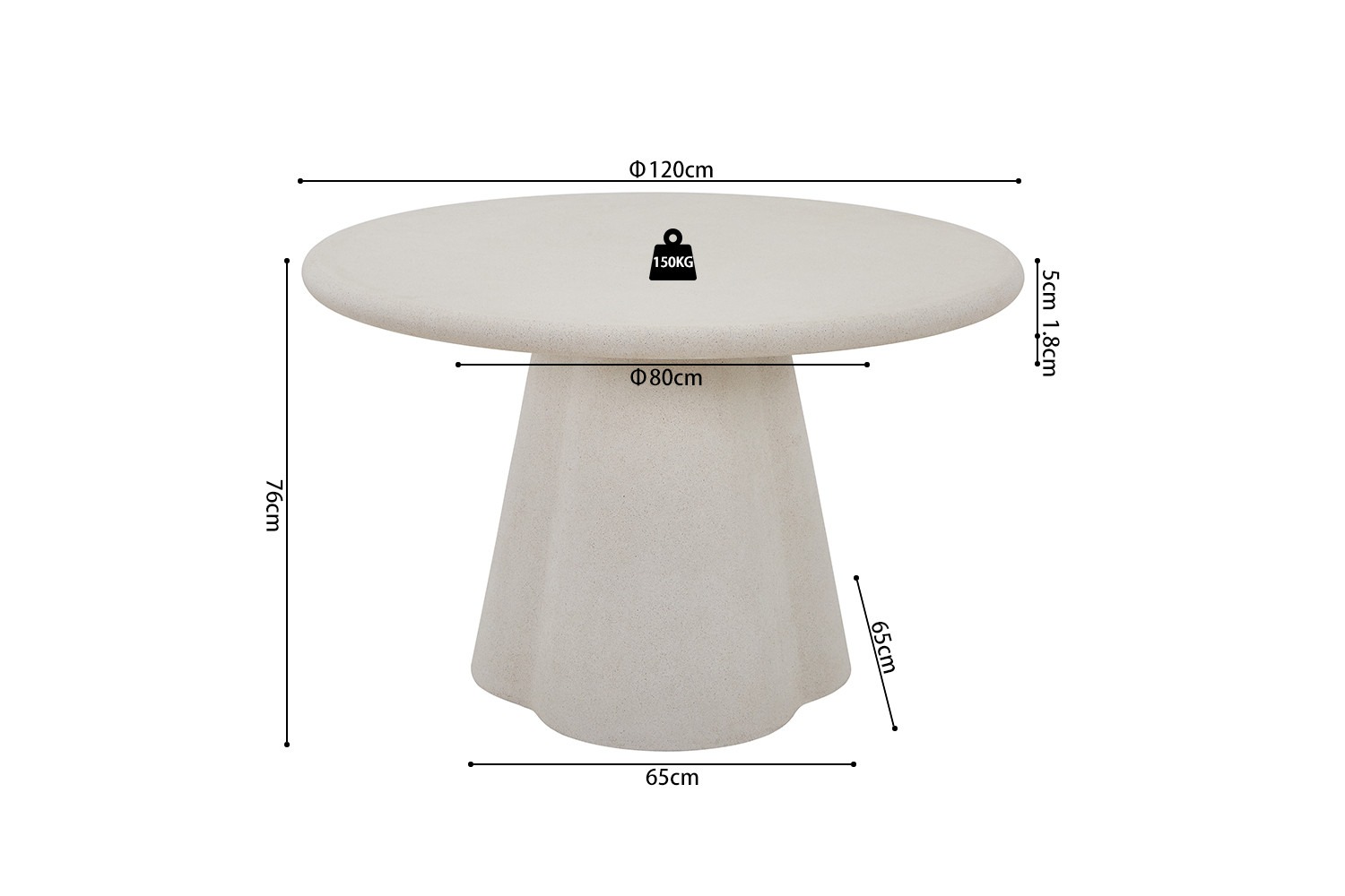 Kortom, deze ronde cementkleurige tafel is niet alleen een fraaie toevoeging aan uw interieur, maar biedt ook praktisch gebruiksgemak en duurzaamheid. Haal deze tafel vandaag nog in huis en geniet van stijlvolle gezelligheid!