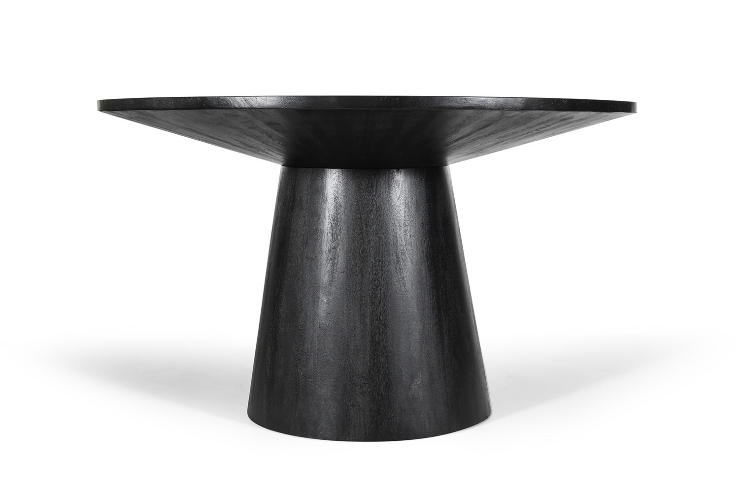 De tafel is gemaakt van hoogwaardig mango hout met een zwarte afwerking, waardoor hij perfect past bij verschillende interieurstijlen.