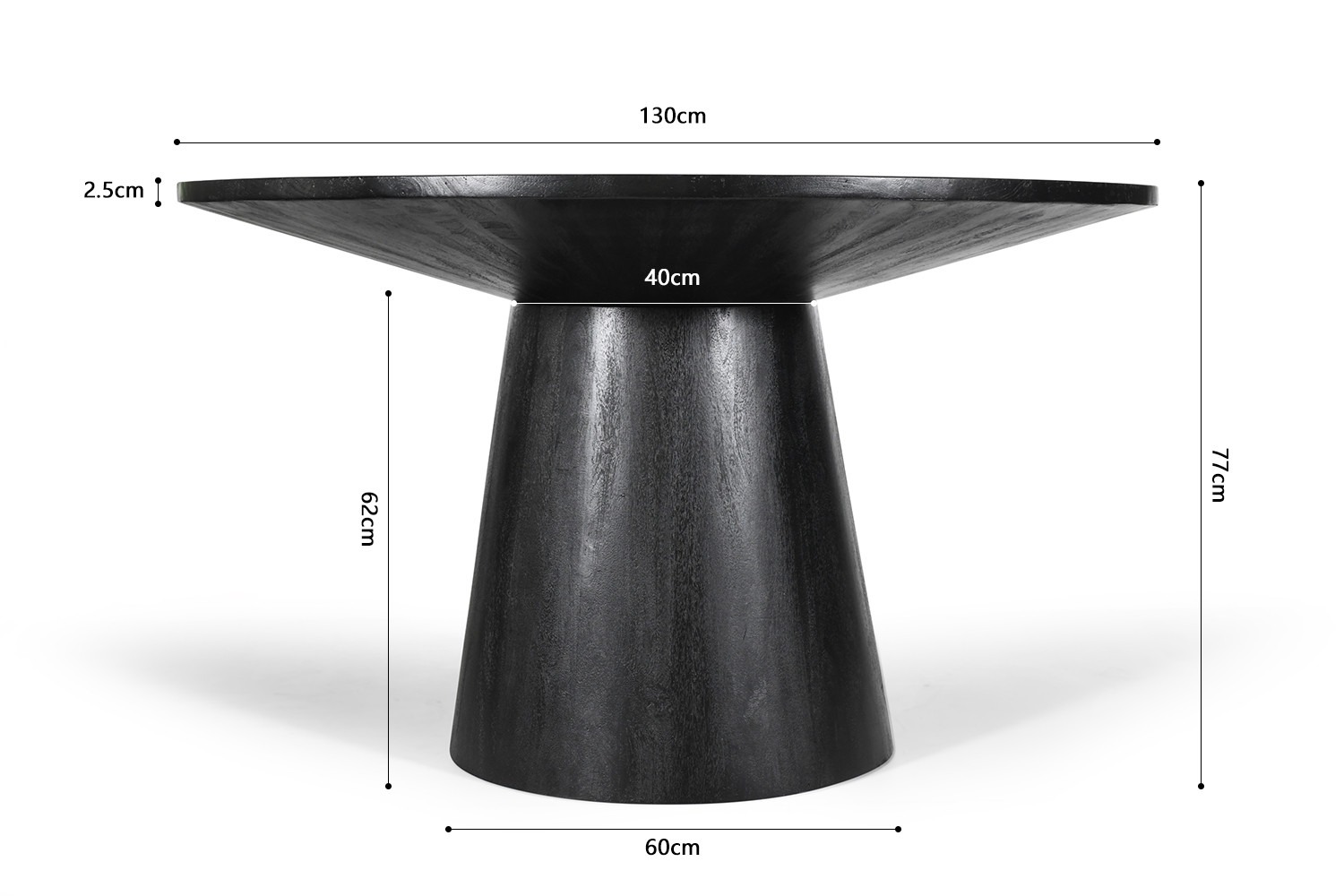 “Moderne ronde tafel ‘Tommy’ van zwart mango hout, 130 cm diameter en 77 cm hoog. Dikte van de tafelblad is 25 mm. “. Bestel nu bij Simpledeal.