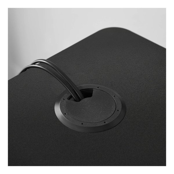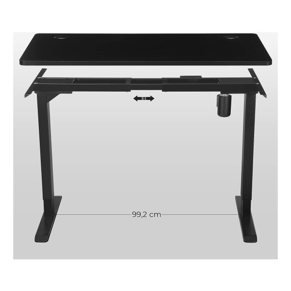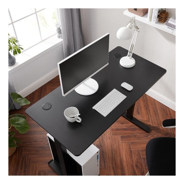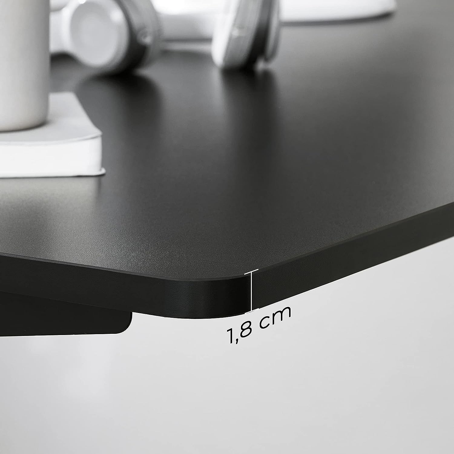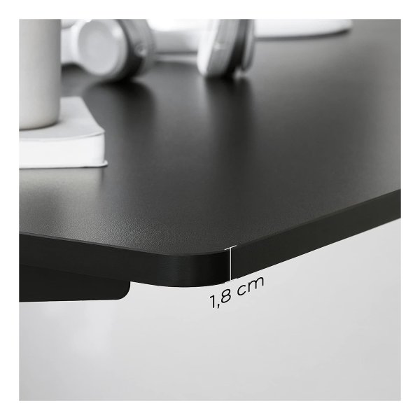 Bullet Point 3 | – – Organiseer uw werkruimte efficiënt met het zwarte MDF tafelblad van 120x60x1,8 cm, ideaal voor een elektrisch bureau. |
