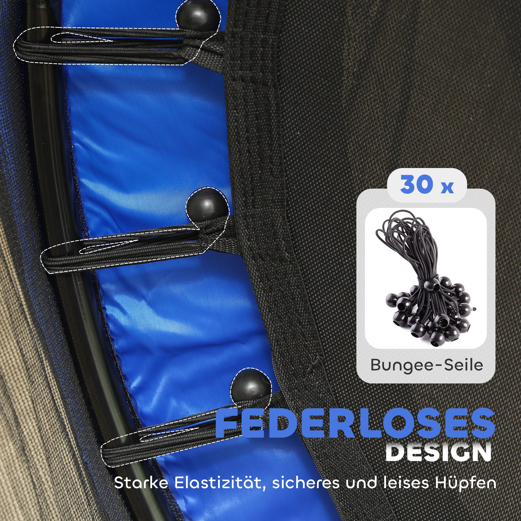 Maximale veiligheid is gegarandeerd met de scheurvaste, robuuste springmat en het hoge veiligheidsnet met een handige ritssluiting. De trampoline staat garant voor urenlang veilig speelplezier voor uw kinderen. Bovendien is de trampoline vrij van metalen veren, waardoor deze nog veiliger is voor de kleintjes.