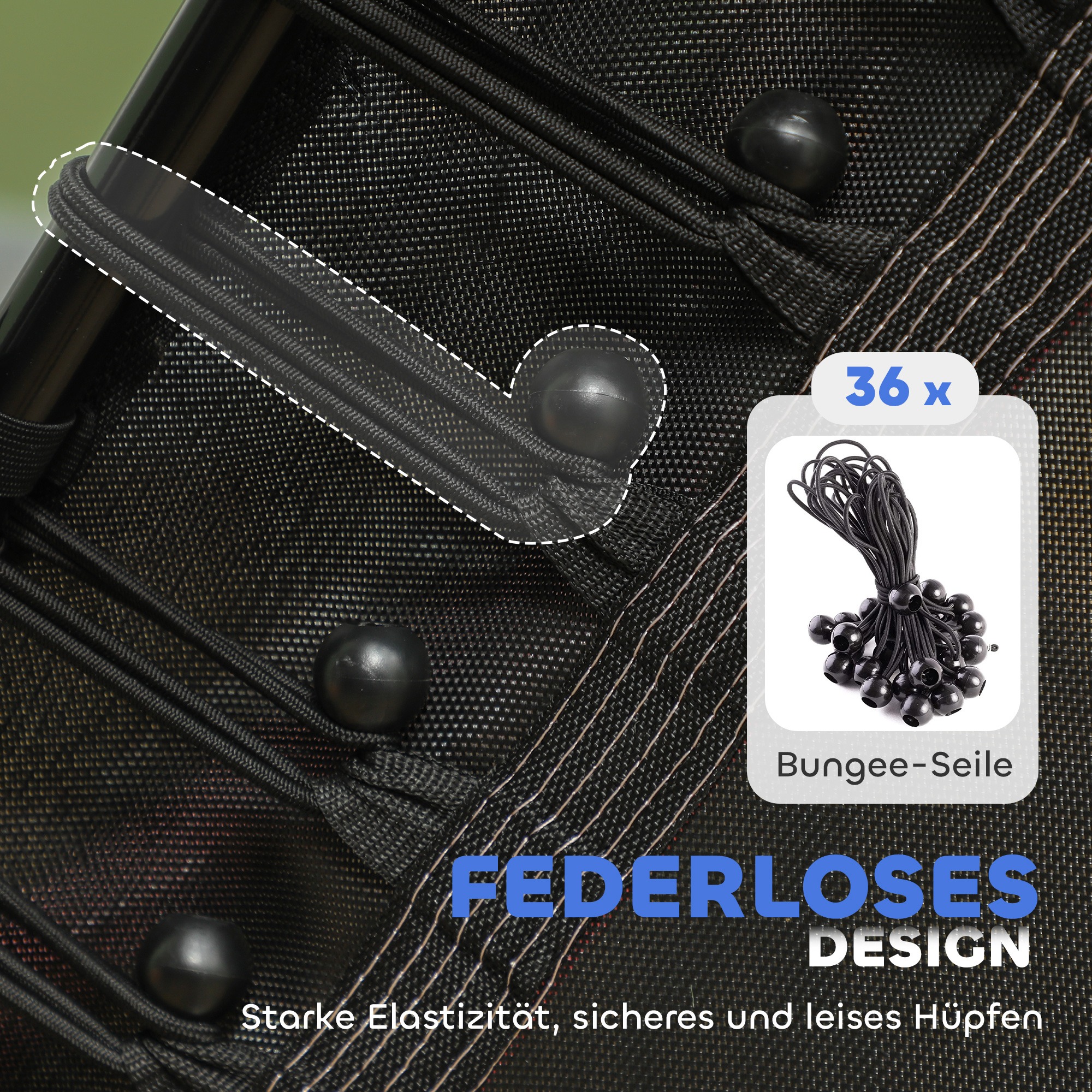 - ✔ Springmat met 6 elastische touwen voor stabiliteit