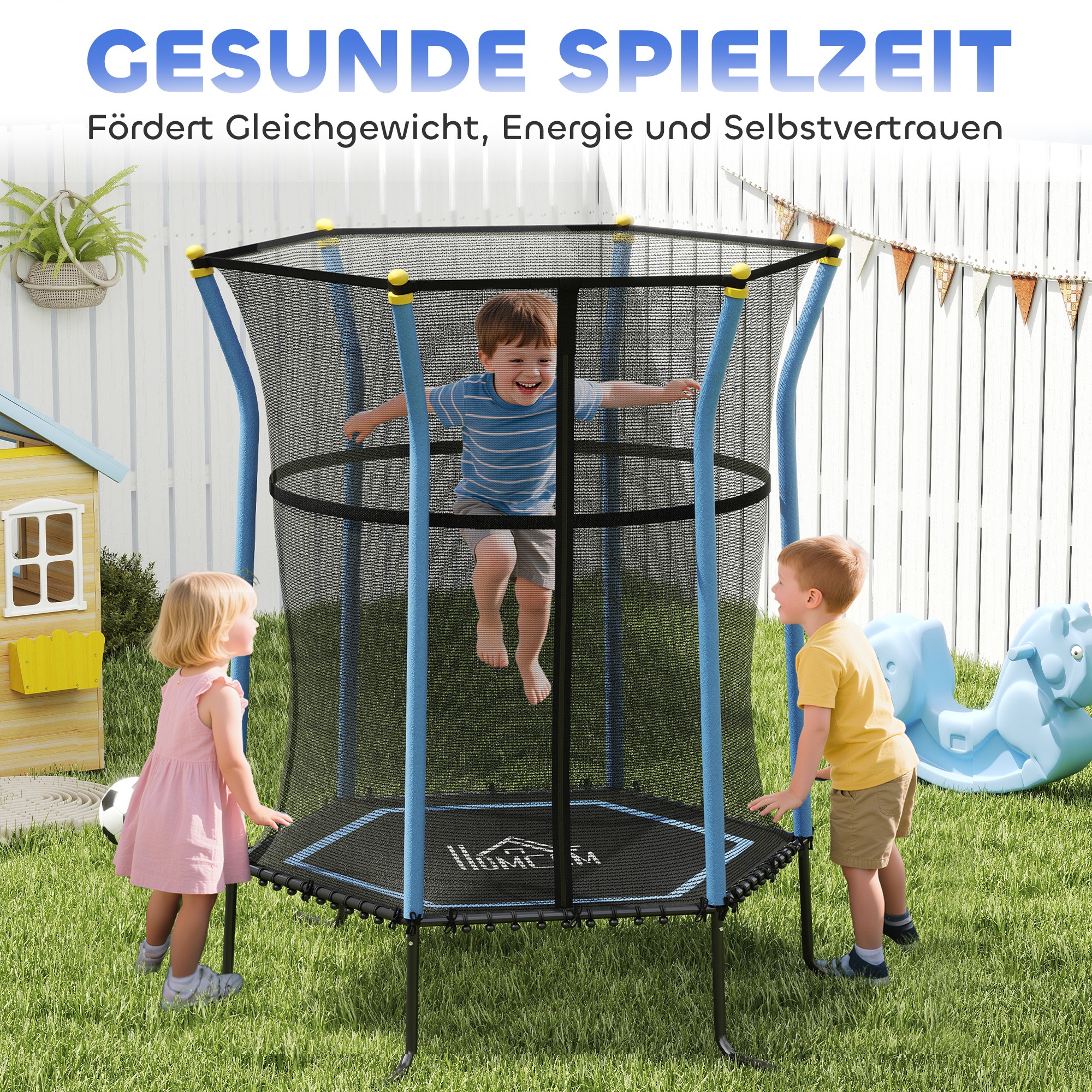 Mini-trampoline voor kinderen met veiligheidsnet, gevoerd, van staal, belastbaar tot 50 kg. Geschikt voor binnen- en buitengebruik. Maximaal springplezier!.