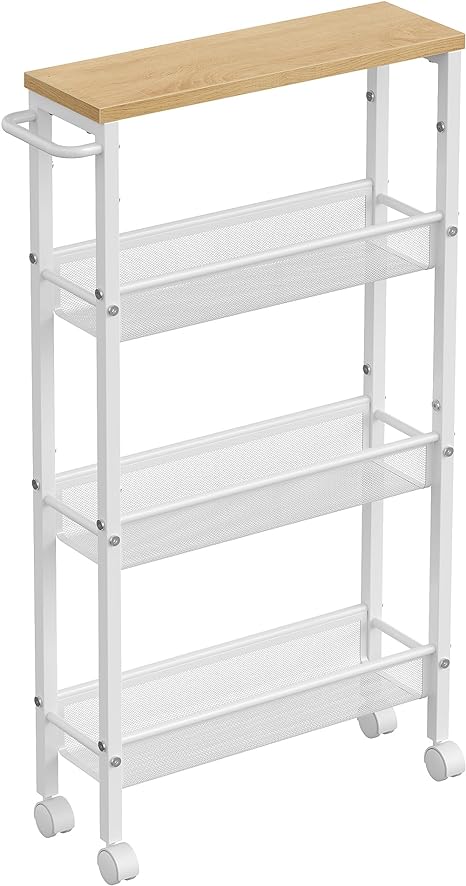 Bullet Point 1 | Perfect voor kleine ruimtes: deze smalle trolley (diepte 13 cm) past perfect in smalle nissen in de keuken, badkamer, thuiskantoor, woonkamer of slaapkamer. Met deze trolley voor niches kunt u het meeste uit verticale ruimte halen en de opslagruimte maximaliseren |
