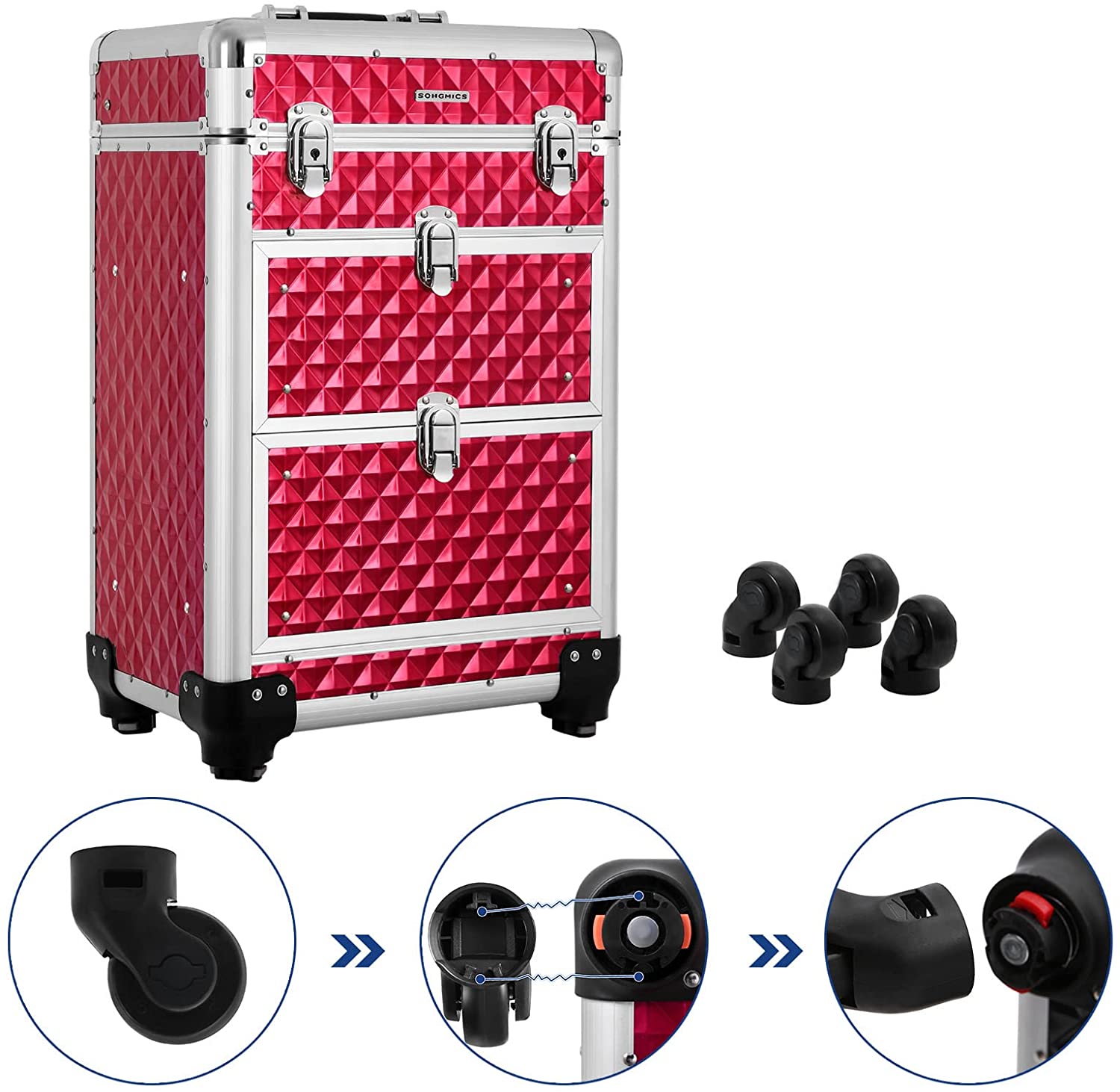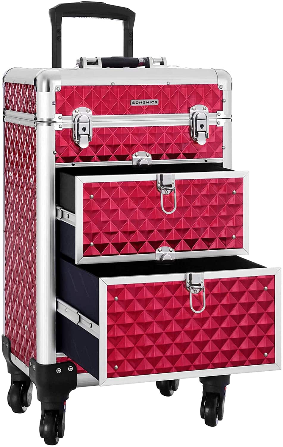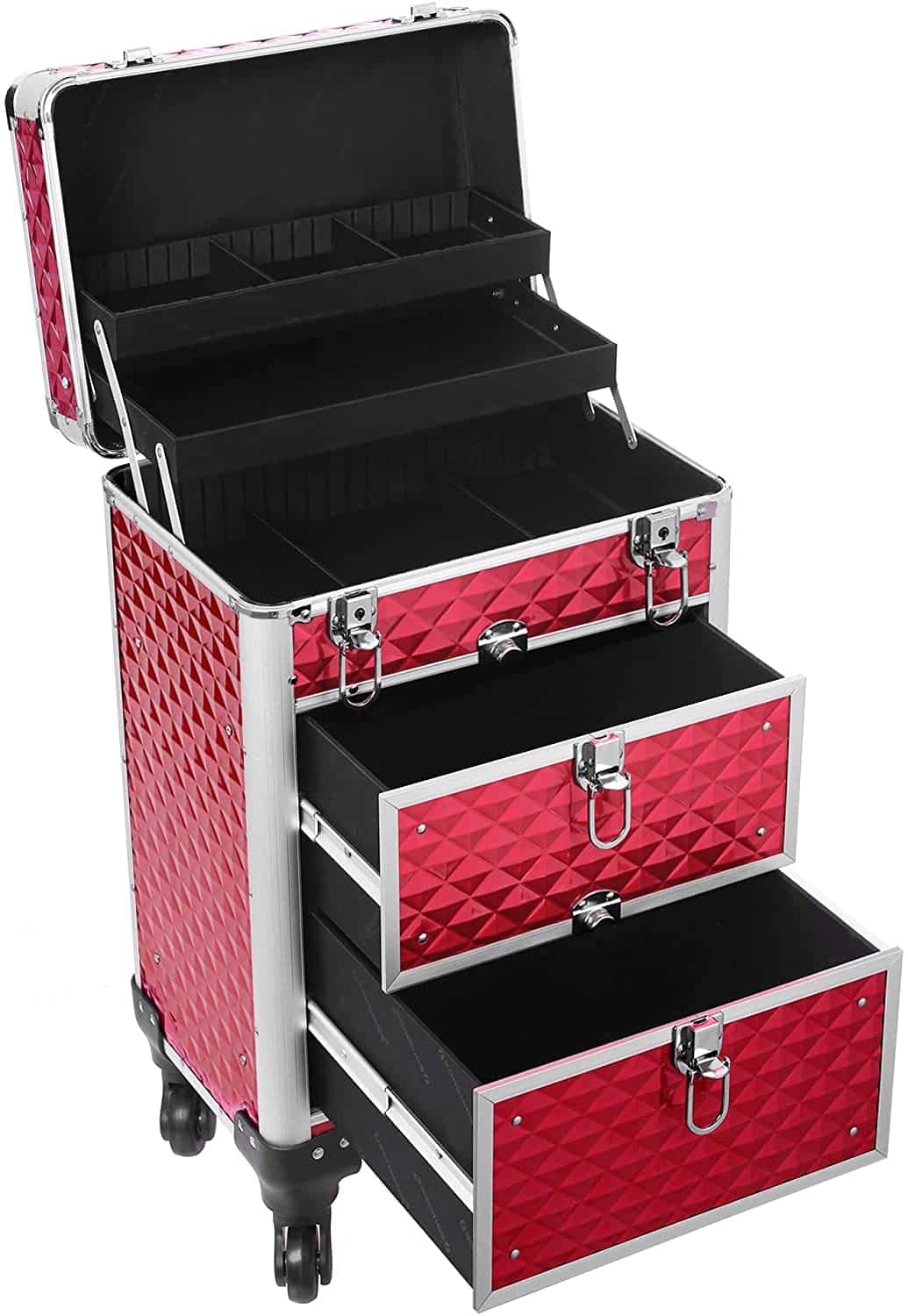 Trolley Cosmetische Hoes, Aluminium Make-Uphoes, Schoonheidskoffer, Rood