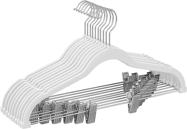 Trouser Hangers, set van 10 fluwelen hangers met verstelbare clips, 42,5 cm lang, niet-slip, ruimtebesparende, voor rokken, jassen, jurken, witte
