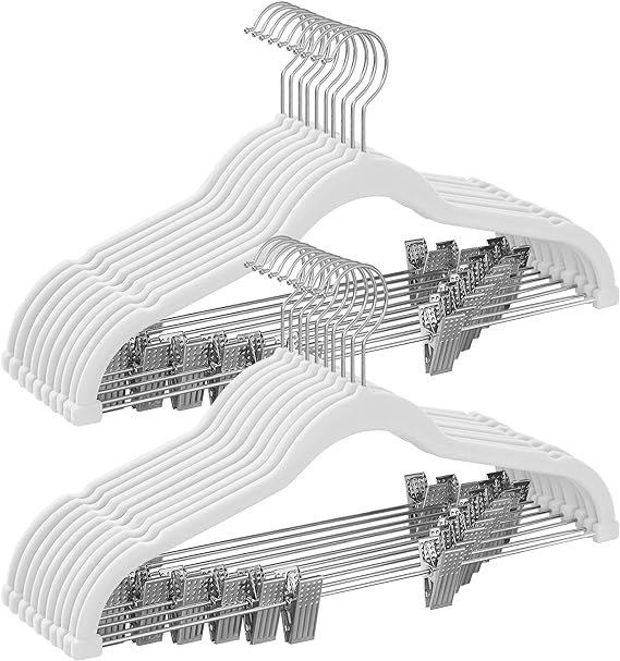 | Bullet Point 1 | [Beweegbare clips] De breedte tussen de 2 clips is verstelbaar (max. 38 cm), waardoor deze hangers perfect zijn voor verschillende maten van broeken en rokken;Rubberen kussens aan het uiteinde van de clips voorkomen dat kleding wegglijdt zonder ze te beschadigen |