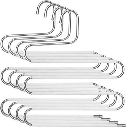 Trouser Hangers, set van 4 Space Saving 5 Layer Metal Pants hangers, S-type niet-slip hangers voor jeans, sjaals, handdoeken, stropdassen, zilveren en witte