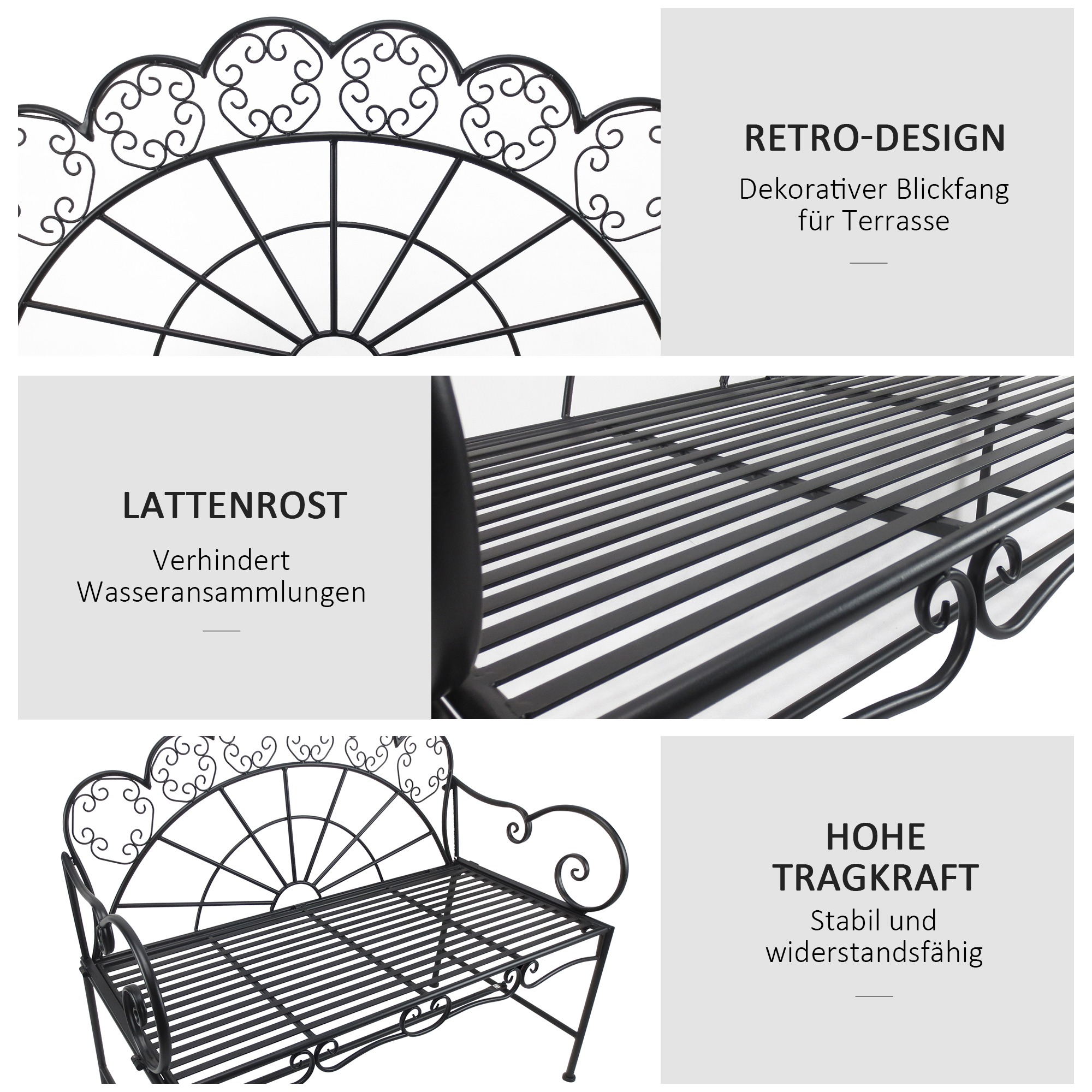 Hochwertige schwarze Gartenbank mit eleganter Optik bietet Platz für 2 Personen, robust und wetterfest für den Außenbereich geeignet, einfache Montage und bis zu 200 kg belastbar..