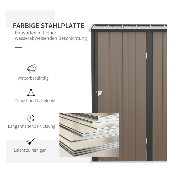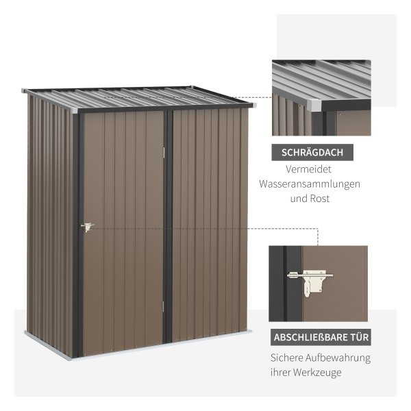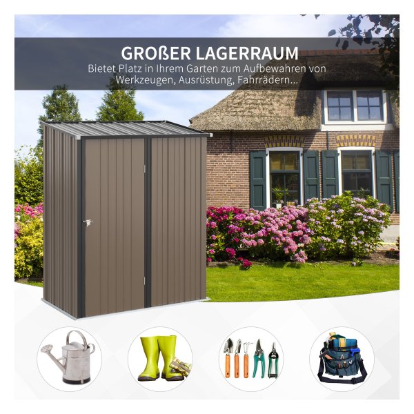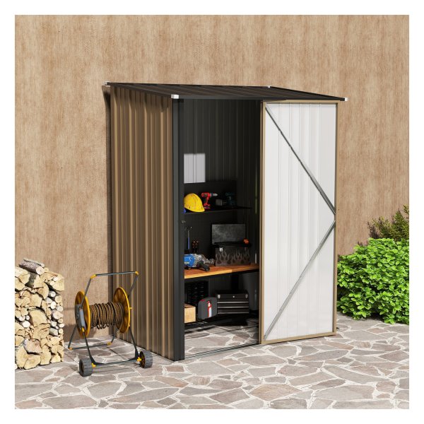 Gereedschapsschuurtje – Metalen tuinhuis – Lessenaarsdak – Bruin