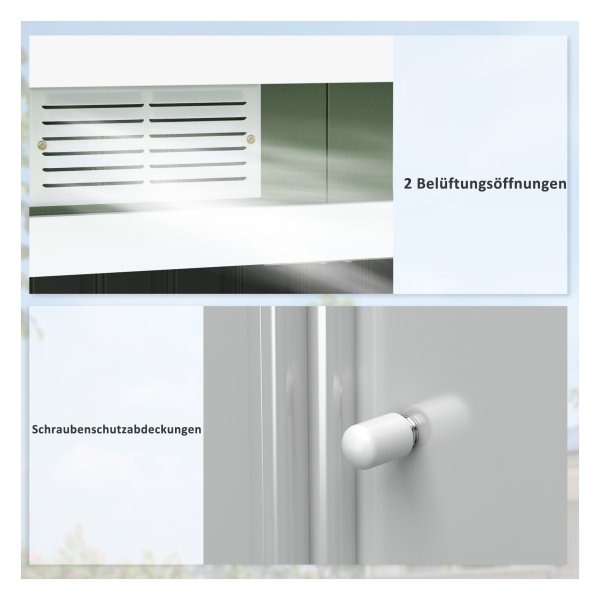 Met de brede en soepel schuivende deuren van dit handige opberghuis heb je altijd eenvoudig toegang tot al je spullen. De twee ventilatieroosters zorgen ervoor dat het tuinhuis goed geventileerd blijft, waardoor vocht en onaangename geurtjes geen kans krijgen. Bovendien is de lichtgroene kleur van het tuinhuis een fraaie toevoeging aan elke tuin.