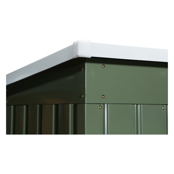 Dit tuinhuis biedt een solide constructie van verzinkt staal, waardoor het duurzaam en robuust is. Het is bestand tegen alle weersomstandigheden en eenvoudig te onderhouden. Met een capaciteit van 3,2 m² is er voldoende ruimte voor al je tuinbenodigdheden, gereedschap en zelfs fietsen. De goede ventilatie zorgt ervoor dat alles fris en droog blijft, terwijl de lichtgroene kleur een frisse uitstraling geeft aan je tuin.
