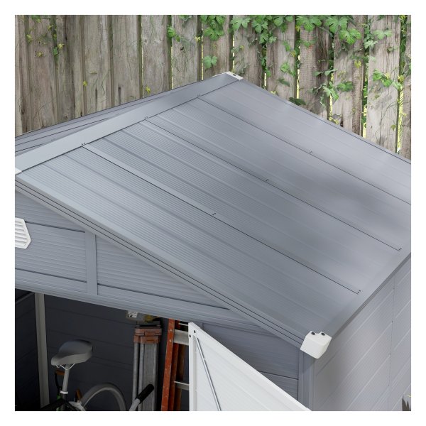Het tuinkastje biedt een uitstekende opslagoptie voor uw tuinbenodigdheden, zwembadaccessoires en gereedschap. Met zijn Lessenaarsdak en afsluitbare deur zorgt dit grijze tuinkastje voor langdurige bescherming tegen vocht en schimmel.