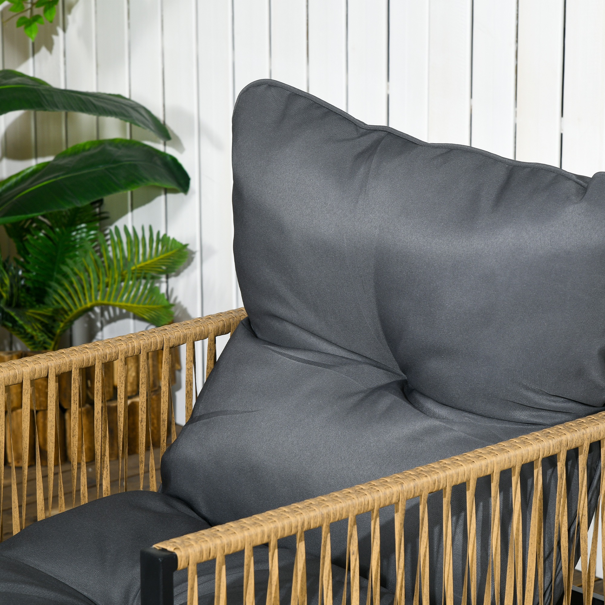 De diepe zitvorm en dikke kussens van de tuinmeubelenset zorgen voor maximaal comfort, zodat je heerlijk kunt relaxen. Het UV- en waterbestendige Polyrattan materiaal, gecombineerd met een roestvrijstalen frame, garandeert duurzaamheid en weerbestendigheid, zodat je tuinset er seizoen na seizoen prachtig uit blijft zien.