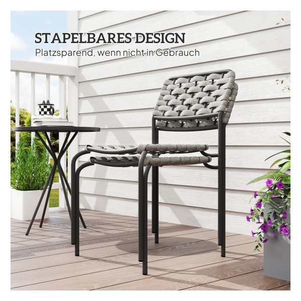 De stapelbare stoelen van deze tuinmeubelset zijn niet alleen praktisch, maar ook ergonomisch ontworpen voor maximaal comfort. De tafel biedt voldoende ruimte voor al jouw outdoor benodigdheden, terwijl het compacte ontwerp perfect is voor kleinere ruimtes.