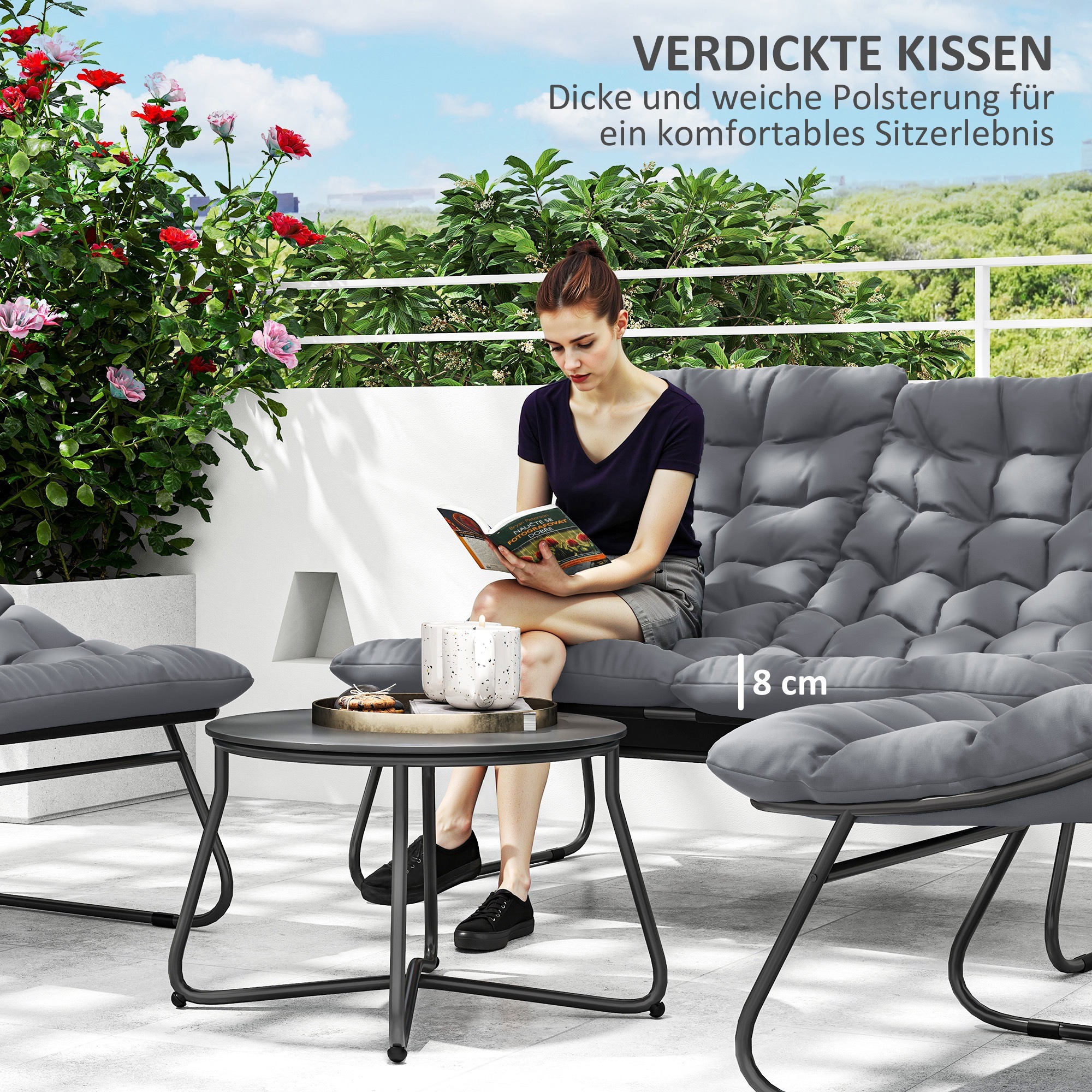 Met onze tuinmeubelset – Robuust – Weerbestendig – Grijs, geniet u van comfort en stijl in uw eigen tuin. Haal het beste uit uw buitenruimte met deze duurzame en aantrekkelijke meubelset die geschikt is voor elk seizoen.