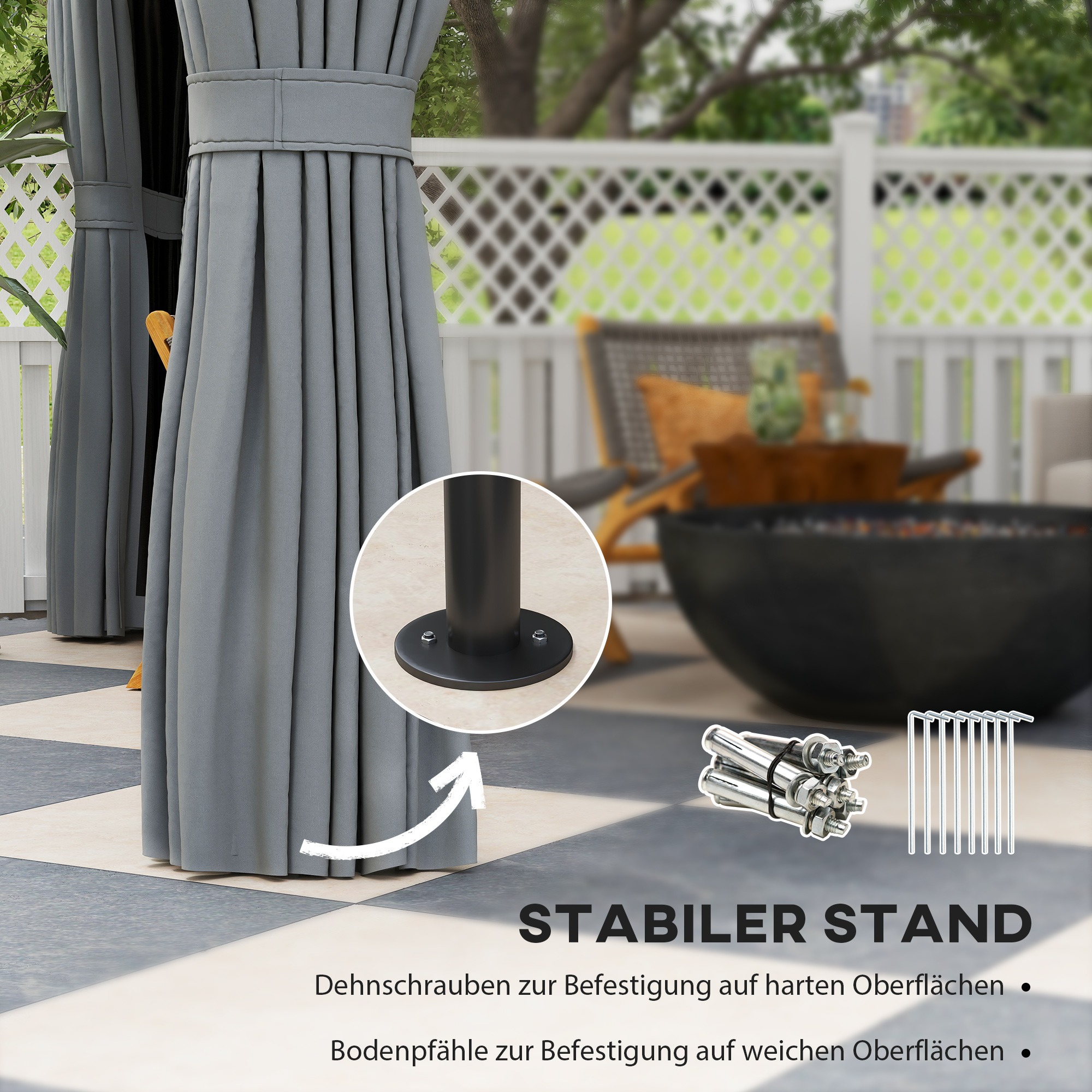 - ✔ Ruimte voor ontspanning: Met een royale afmeting van 306L x 306B x 269H cm biedt dit paviljoen voldoende ruimte voor 6-9 personen. Ideaal voor gezellige avonden met familie en vrienden.
