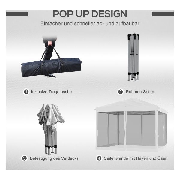 Stilvolles tuinpaviljoen met zijwanden voor bescherming tegen weer en zon. Ideaal voor tuinfeesten of ontspanning. Eenvoudig op te zetten en inklapbaar, met insectennetten en extra stabiliteit.