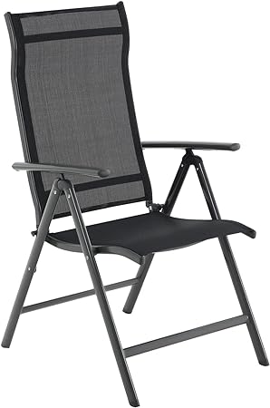 Klapperende tuinstoel, buitenstoel met duurzame aluminiumstructuur, 8-hoek liggende rugleuning, max.Capaciteit 150 kg, zwarte
