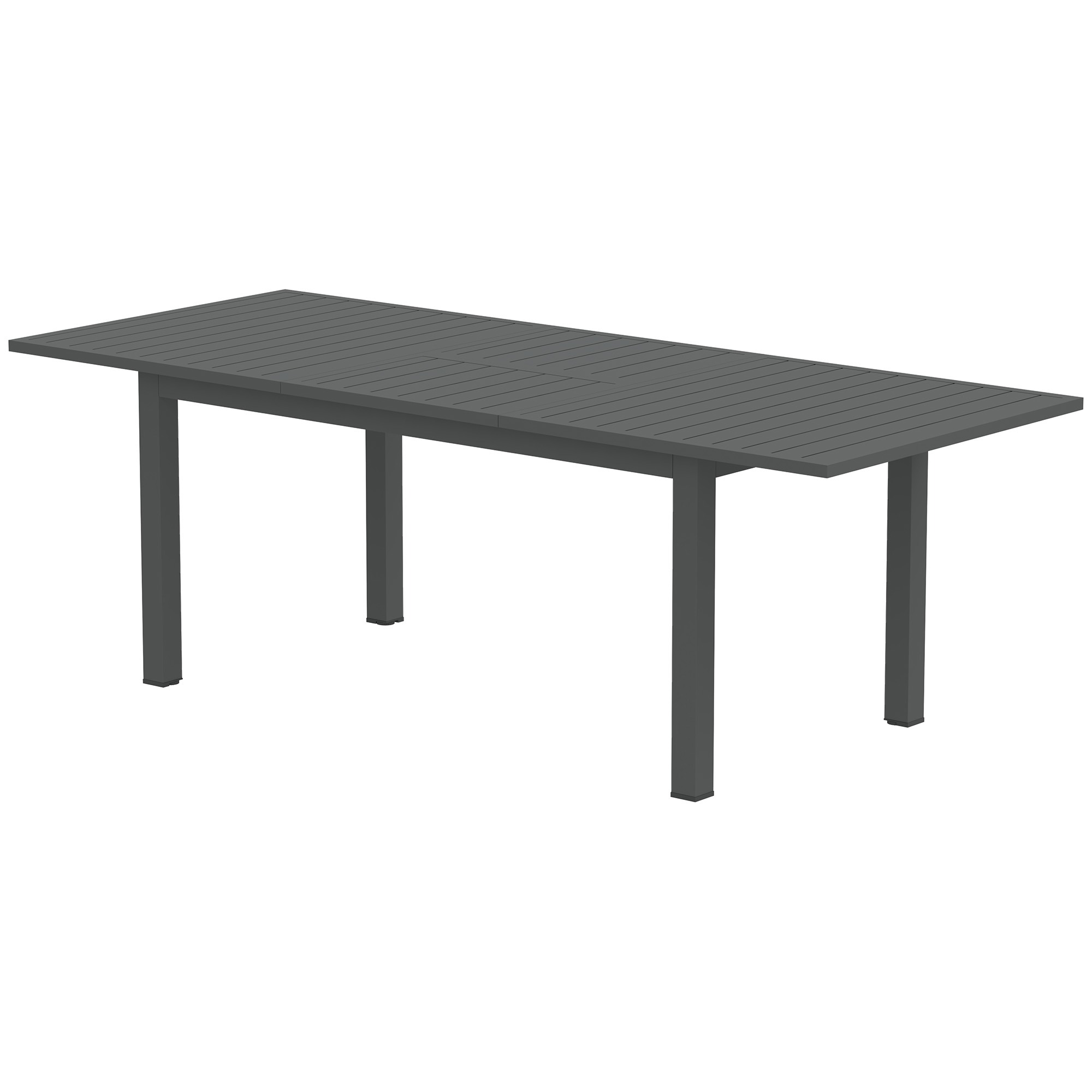 Geniet van heerlijke maaltijden in de buitenlucht met de weerbestendige tuintafel van hoogwaardig aluminium die functionaliteit en stijl perfect combineert. De tuintafel kan eenvoudig worden uitgebreid met een vlindermechanisme en biedt comfortabele zitplaatsen voor 6-8 personen. Dankzij het stevige aluminium frame en het lamellenoppervlak is de tuintafel onderhoudsvriendelijk en ideaal voor elk tuinfeest.