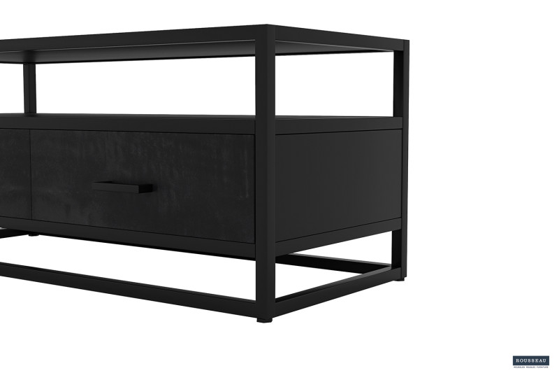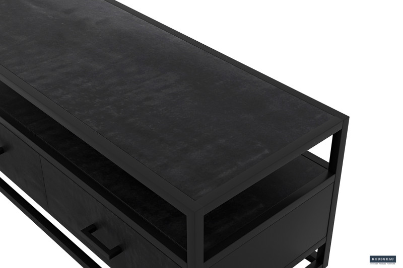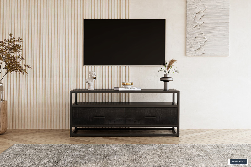 Tv-meubel ‘Madeira’ 120 cm Mangolia zwart, Structuur metaal en blad exotisch hout mangolia