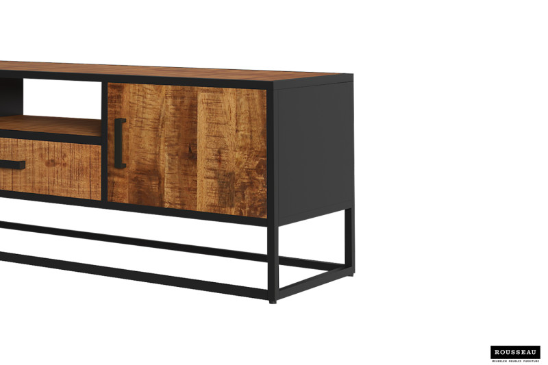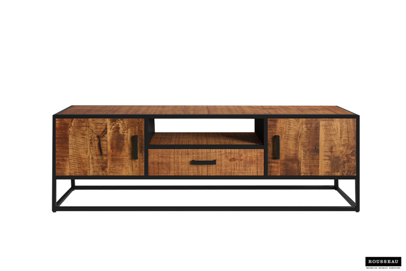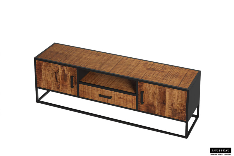 Tv-meubel ‘Madeira’ 160 cm Mangolia, Structuur metaal en blad exotisch hout mangolia