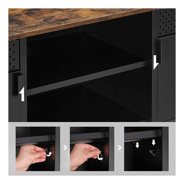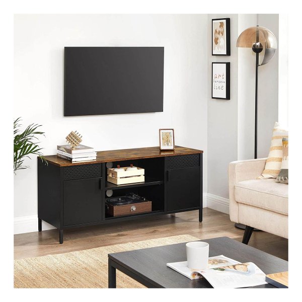 Het RetroDesign tv-meubel is gemaakt van hoogwaardige spaanplaat en robuust staal, waardoor het geschikt is voor televisies tot 55 inch. De 3 verstelbare legplanken, 2 deuren en 6 vakken bieden genoeg opbergruimte voor al je apparatuur en accessoires. Zo kun je je spelconsoles en familiealbums netjes opbergen en goed beschermd houden.