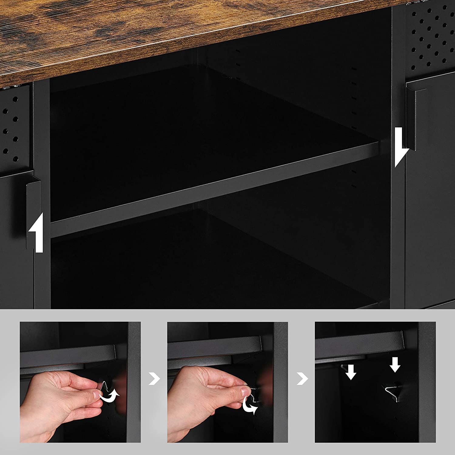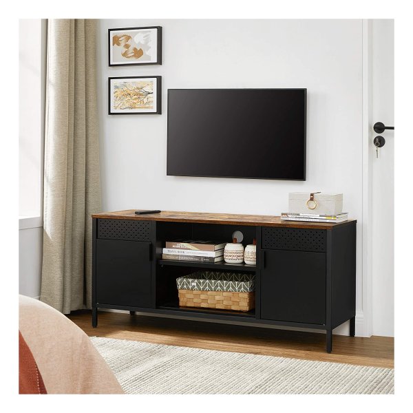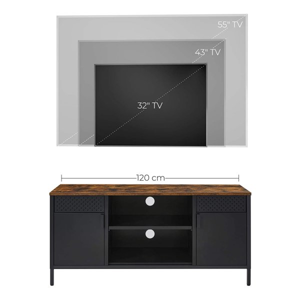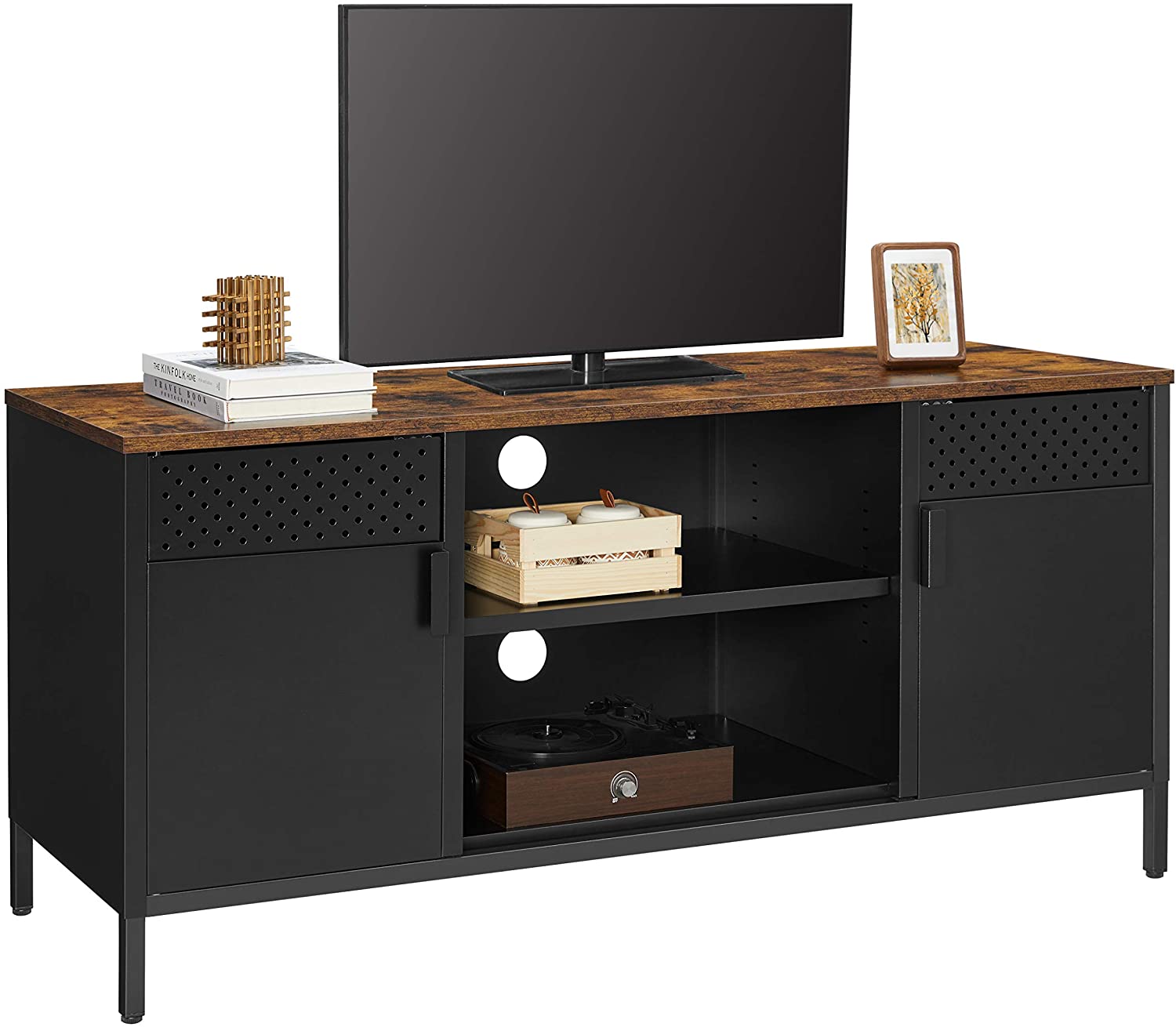 Tv-meubel – RetroDesign – verstelbare planken – geschikt voor 55 inch TV – vintage bruin-zwart