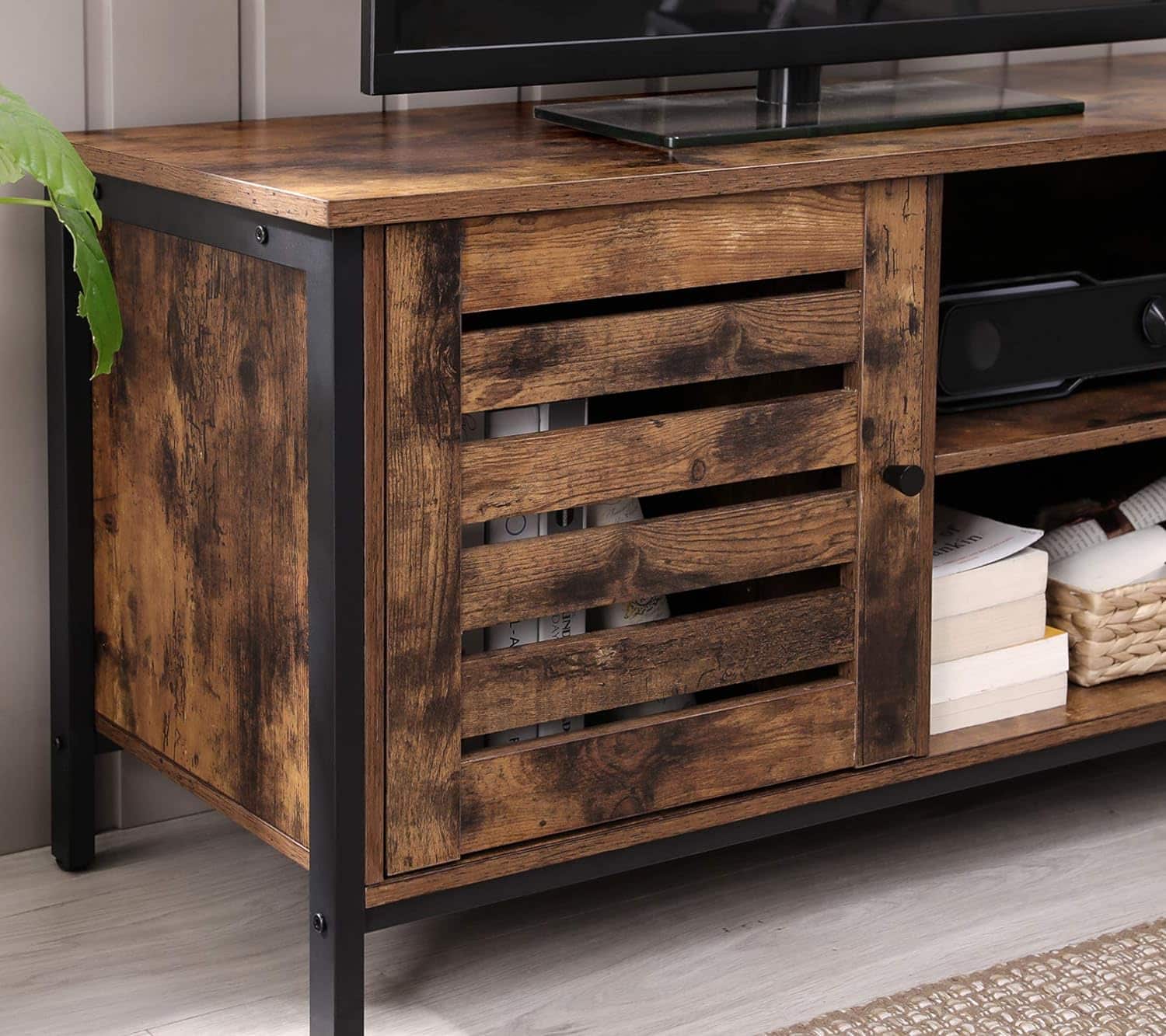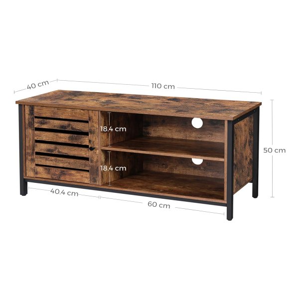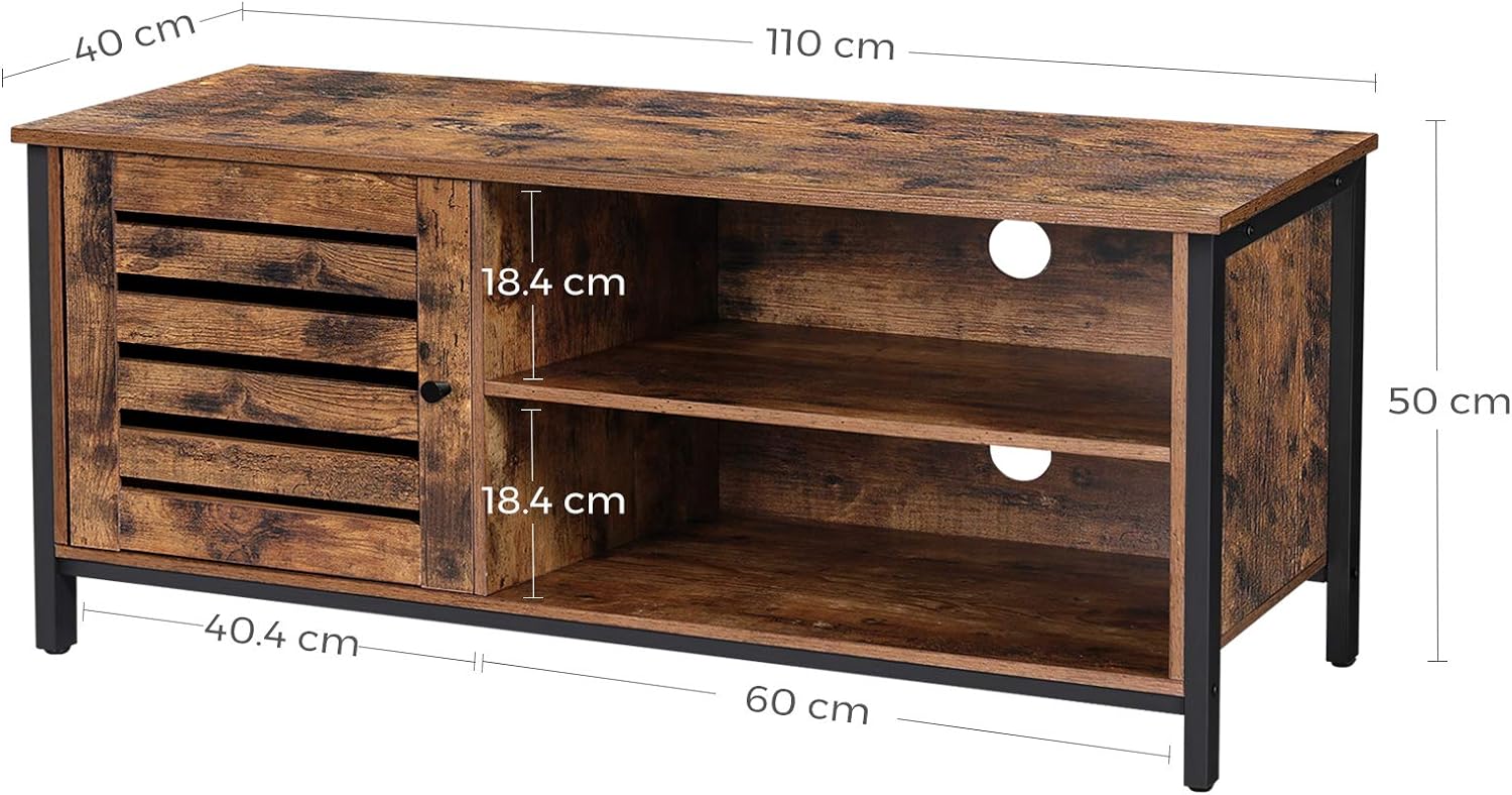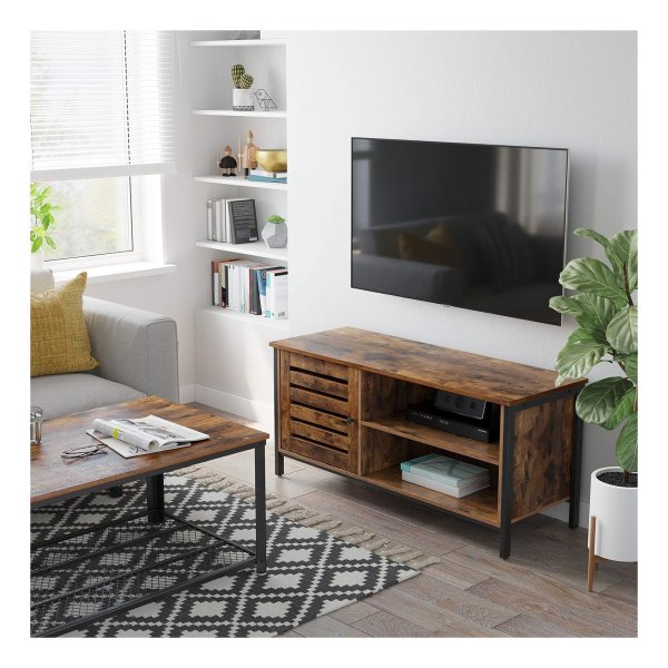 TV meubel, voor tv’s tot 50 inch, tv console, tv standaard, kast met lamellendeur, 2 planken, woonkamer, slaapkamer, industrieel, rustiek bruin en zwart