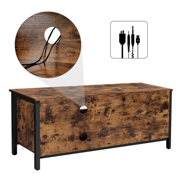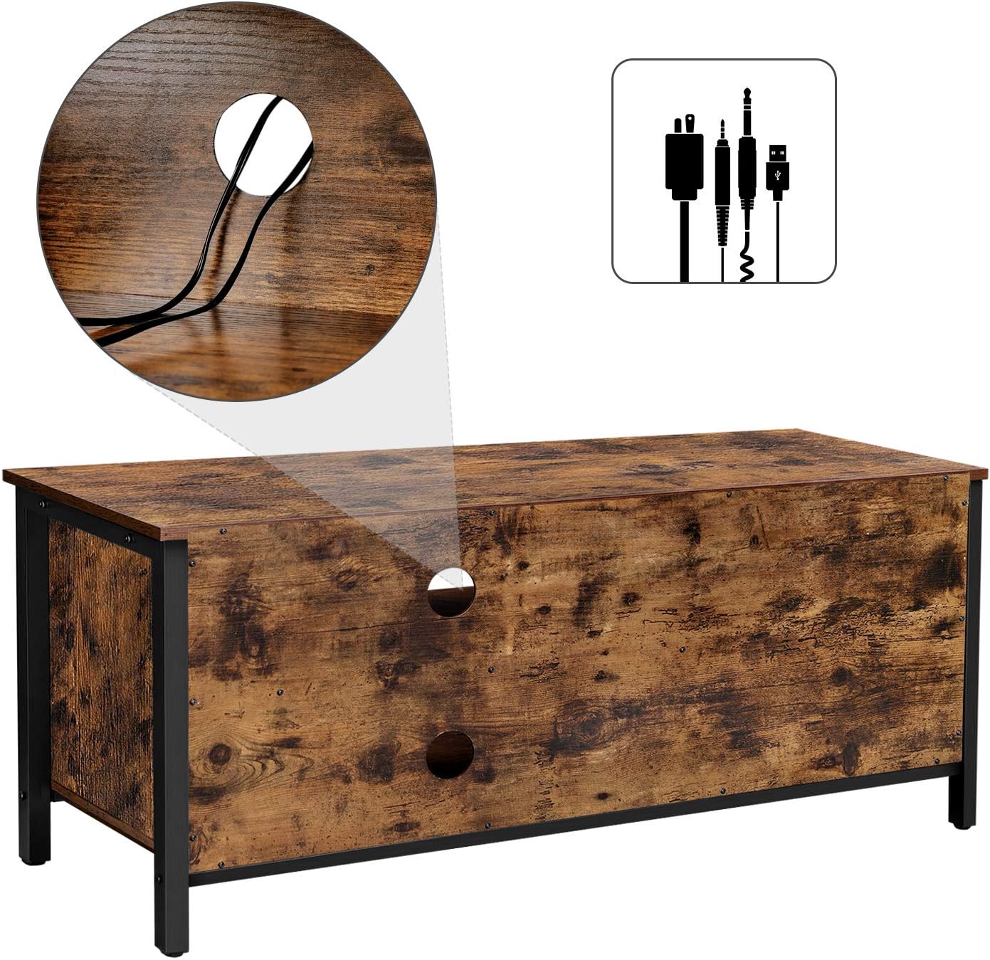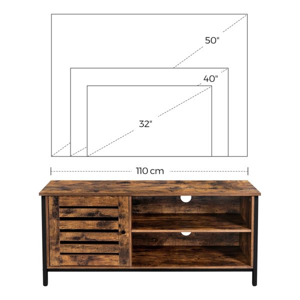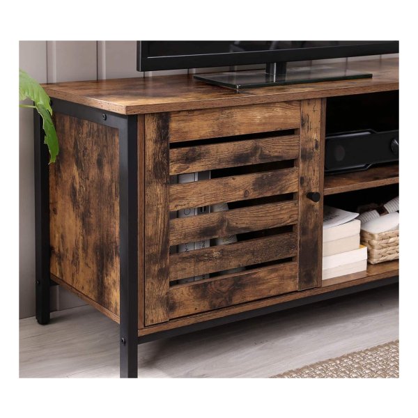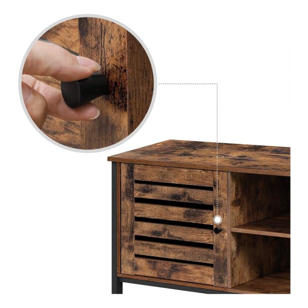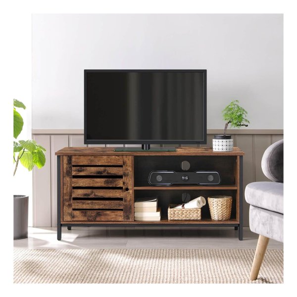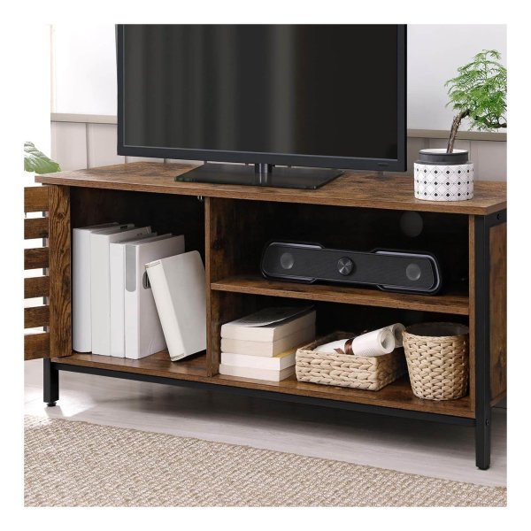 TV meubel, voor tv’s tot 50 inch, tv console, tv standaard, kast met lamellendeur, 2 planken, woonkamer, slaapkamer, industrieel, rustiek bruin en zwart