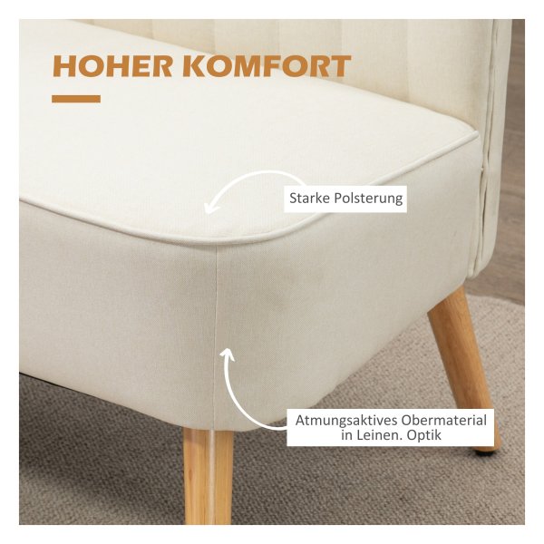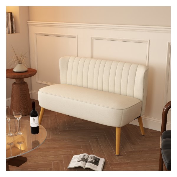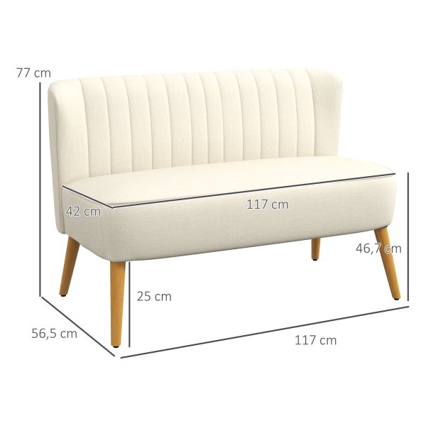 Op zoek naar een gezellige en stijlvolle toevoeging aan jouw interieur? Dan is de tweezitsbank de perfecte keuze! Deze elegante bank is ideaal voor het creëren van een knusse plek om te ontspannen of om gezellig samen te zitten. Met zijn crèmewitte kleur en houten poten past hij perfect in verschillende interieurstijlen.